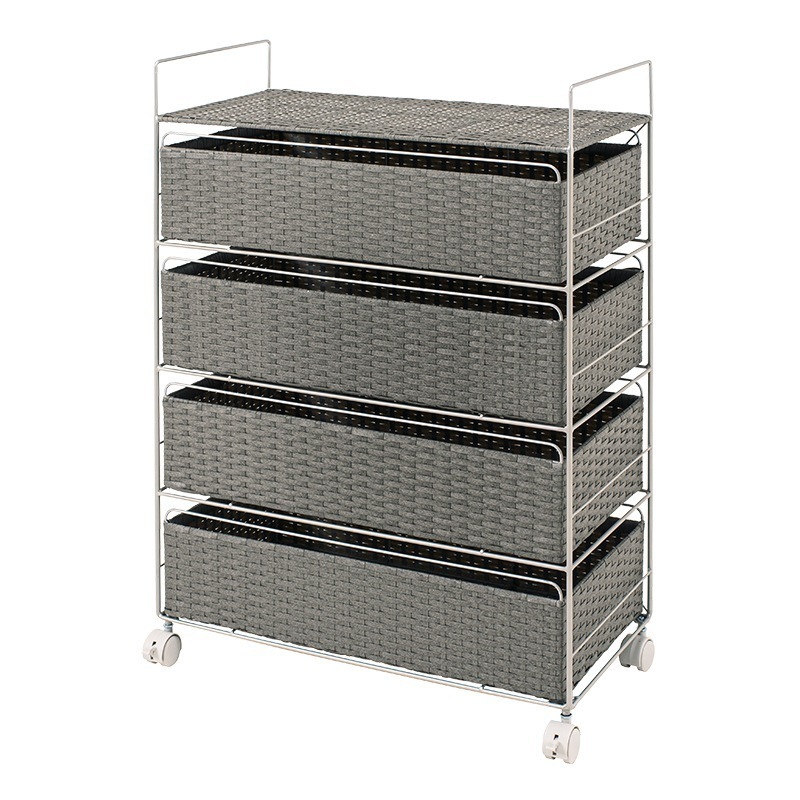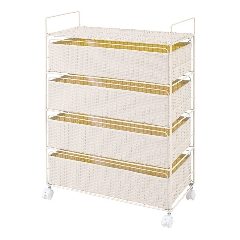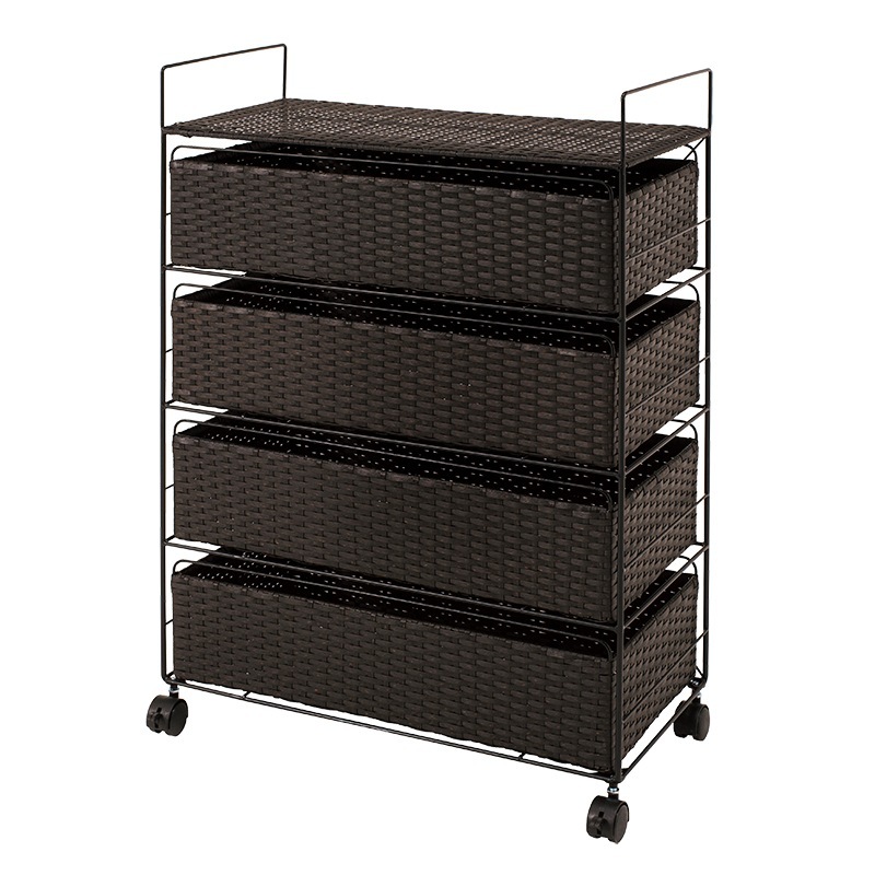Laundlyラック 棚 洗面 水周り おしゃれ アジアン ラタン風 キャスター 引き出し かご バスケットラック シンプル スリム 簡単組立 4段 幅60cm