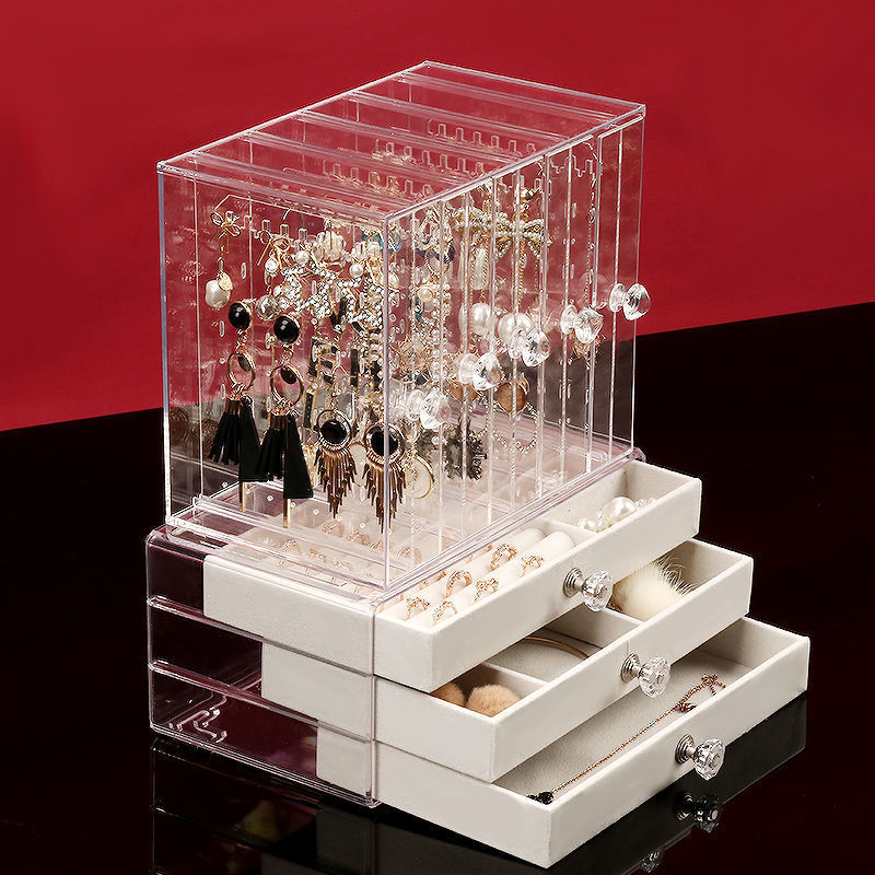 上段のピアスの引き出しも曲がっていたりアクリルの端がトゲトゲしていたりでとても残念な感じでした。