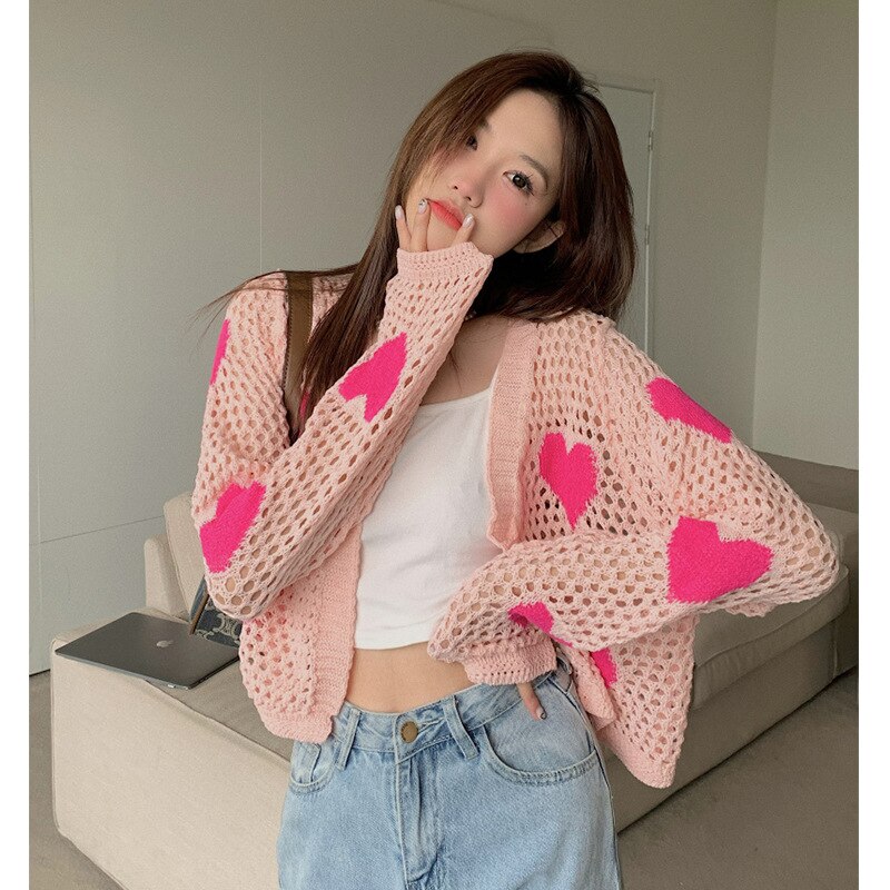 タートルネックベーシックニット春アウター 春 ニュースタイル ハート型 刺繍 透かし彫りニットカーディガン 着痩せ 長袖 トップス カーディガン カーディガン 人気なリブニット リボン
