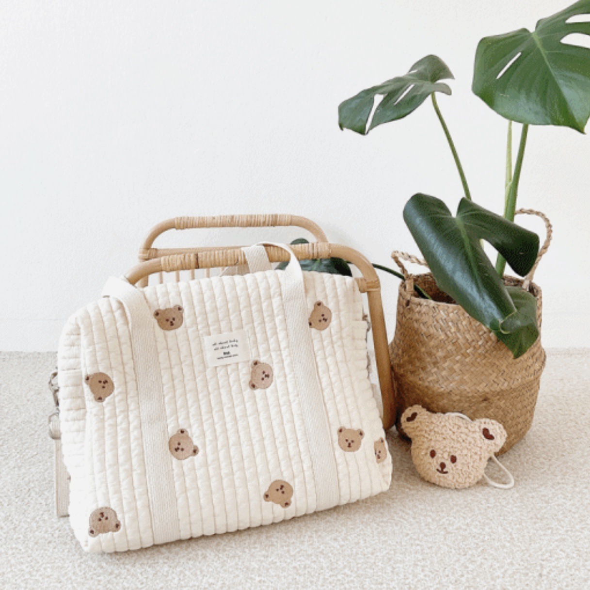 小熊手提げ大容量の母子カバンシングルショルダーファッション刺繍ママバッグ