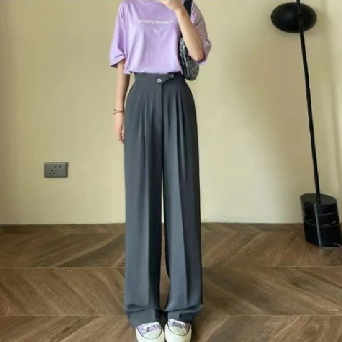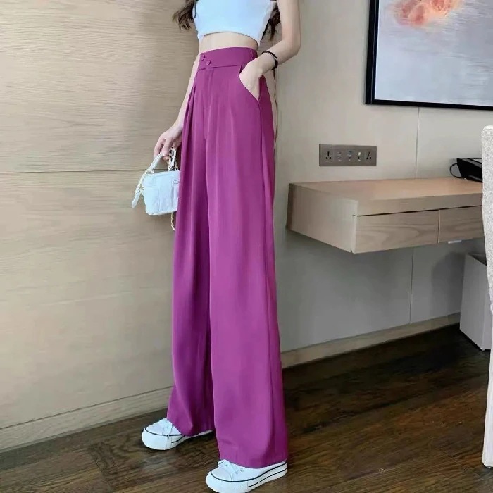 メガ割2023春夏秋 ハイウエストワイドパンツ 美脚 脚長 ストレートパンツ レディース 美しいボディーラインボタンストラップ ロングパンツ スリム スタイルアップ ウエストゴム ゆったり カジュアル