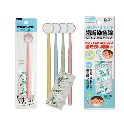 クリアデント広栄社 クリアデント ミラー 1本入り(歯垢染色2錠付き) カラーは当店おまかせ(色選択不可) + 歯垢染色錠 12錠入セット 【ネコポス】
