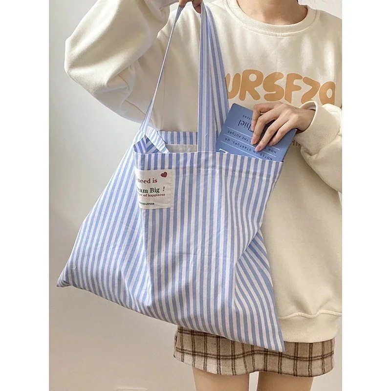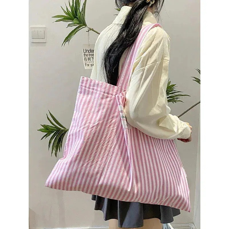 ストライプバッグ女性百合大容量ワンショルダー帆布バッグ小フレッシュトート
