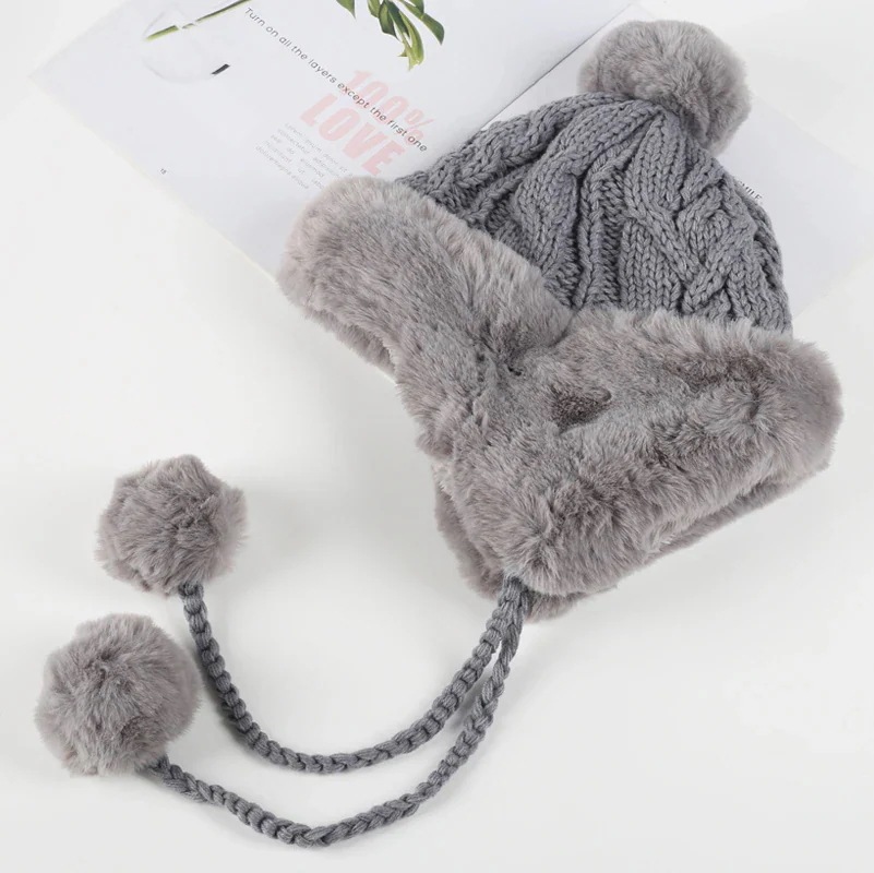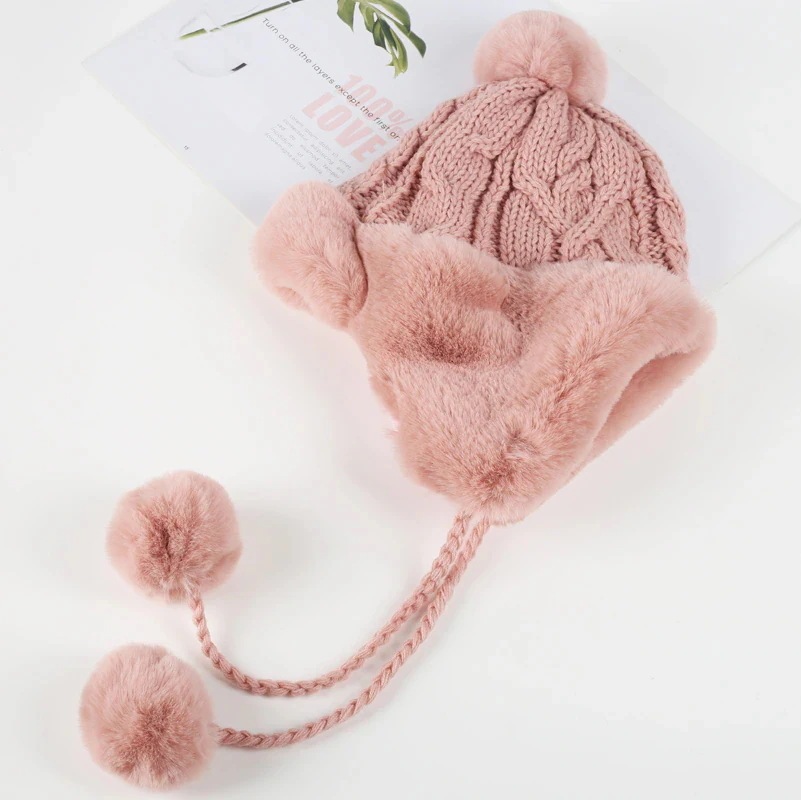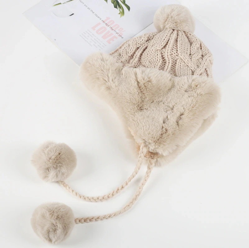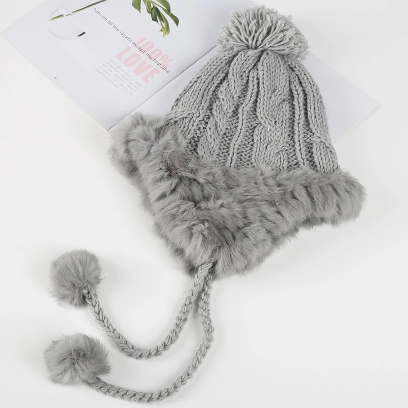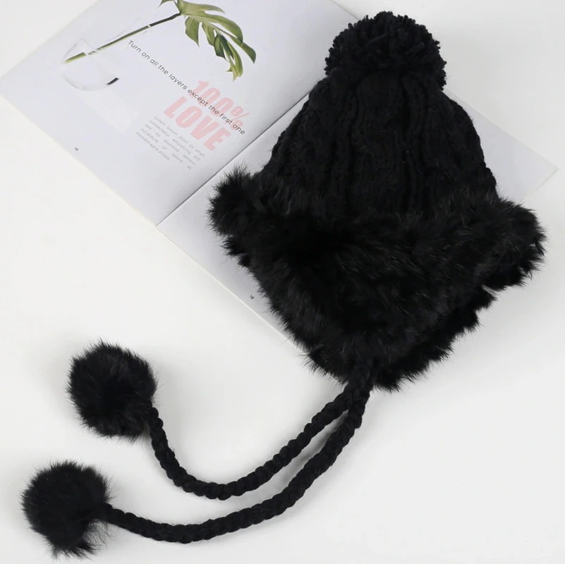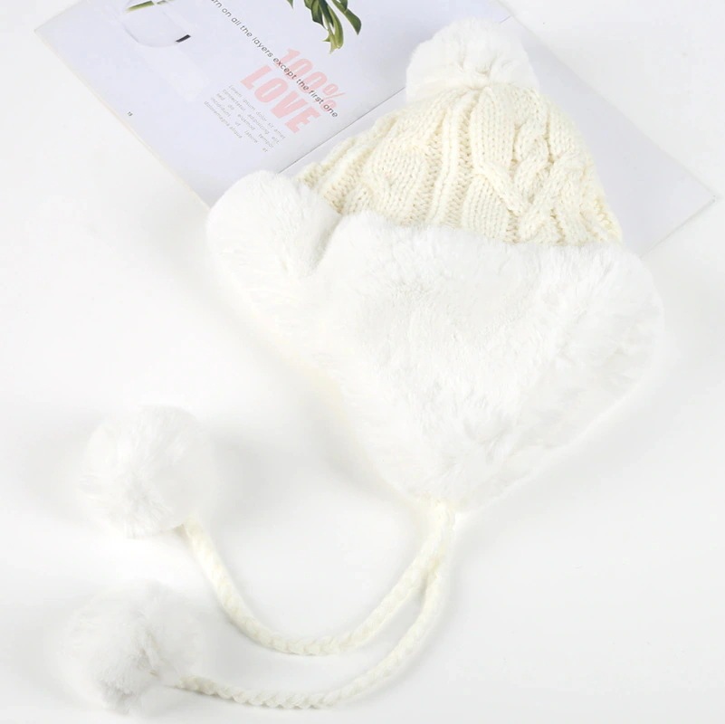 白いウサギの毛皮の冬の雪のウールの帽子の女性のかわいい毛皮のボールの耳の保護毛皮のレイ風水帽子暖かい帽子のぬいぐるみ