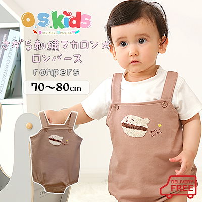 赤ちゃん ベビー服 出産祝い プレゼント サロペット ロンパース 2022 春夏 マカロン サガラ刺繍 フレンベージュ 70cm 80cm【os206-326】[即納:1-3営業日]