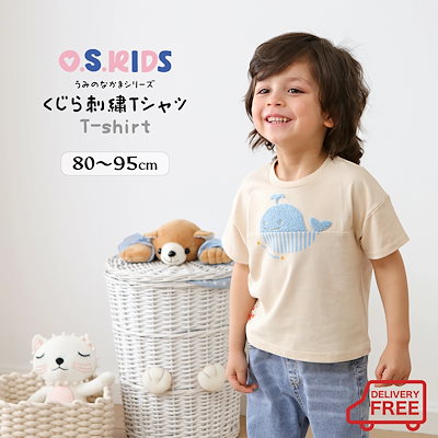 うみのなかまシリーズ くじら刺繍Tシャツ 子供 キッズ 子供服 キッズ服 秋 くじら さがら刺繍 刺繍 Tシャツ 半袖 綿100%【即納:1-3営業日】 メ込