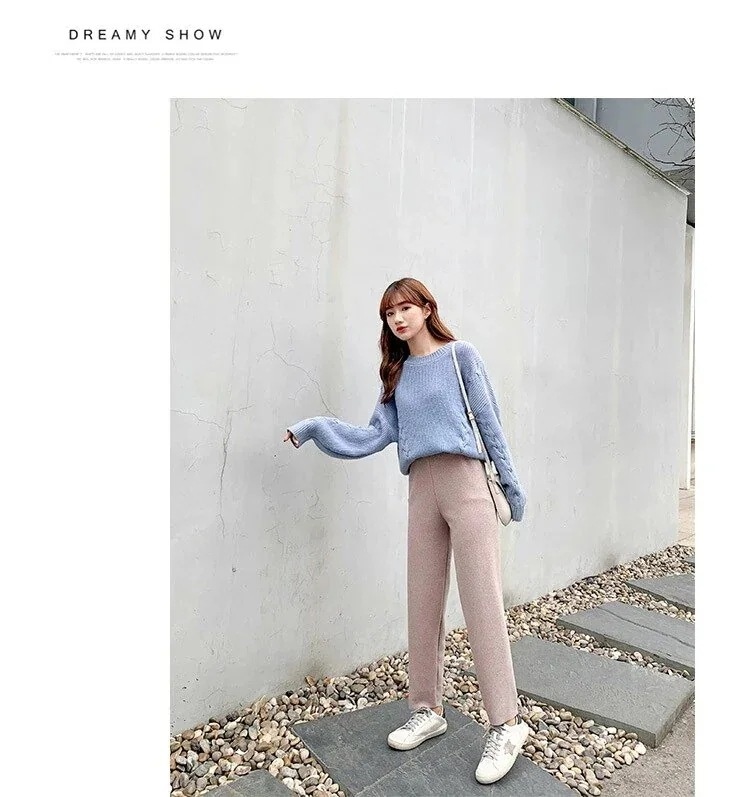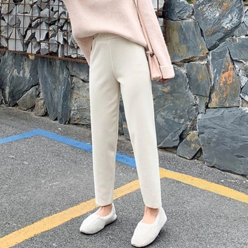 ワイドパンツ 裏起毛ファッション シンプルおしゃれ 脚長効果!ハイウエストパンツ ニットパンツ ワイドパンツ脚長効果!スキニーパンツ スラックスパンツ