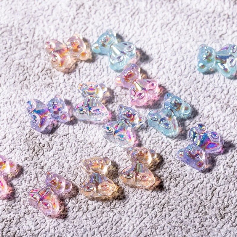 虹色クマちゃん ネイルチャーム 3Dネイルアクセサリー 30個セット 6色入 8*10mm フェミニン ネイルパーツ デコパーツ 透明 大人可愛い 結婚式 卒業式 パーティー おすすめ DIY