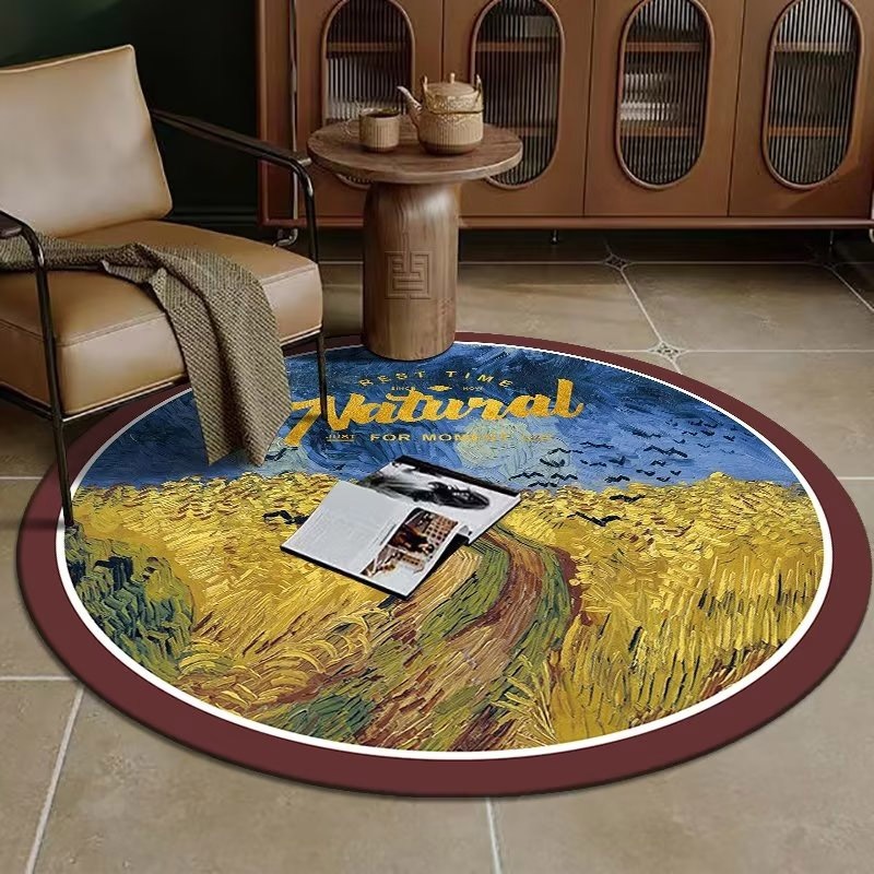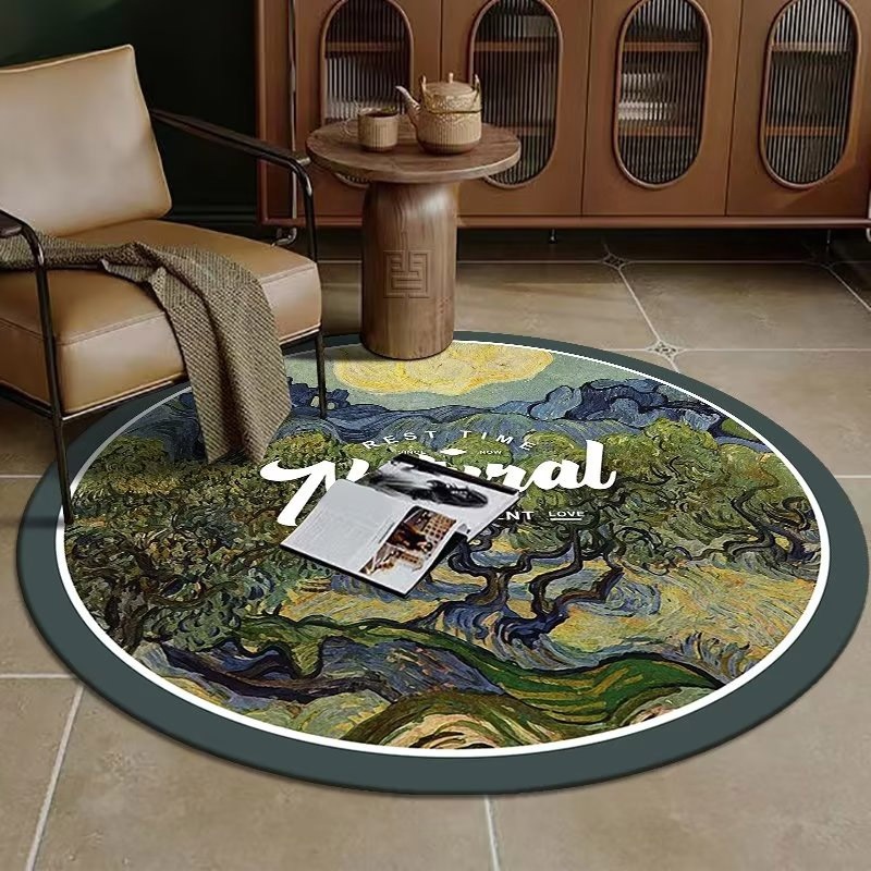 ラグマット 円形美風油絵テーブルマットスポーツチェアフロアマットオフィスカーペット