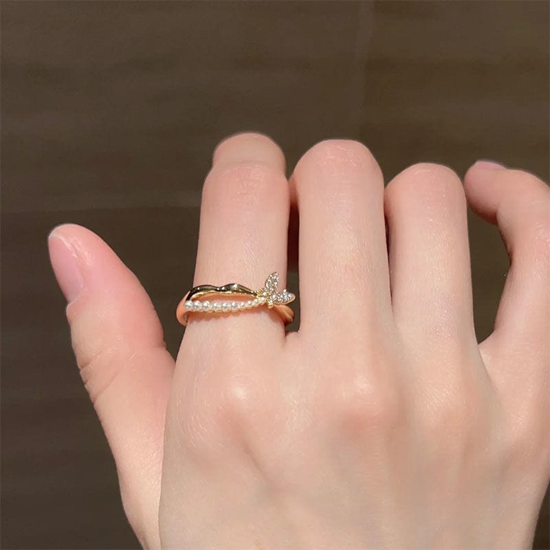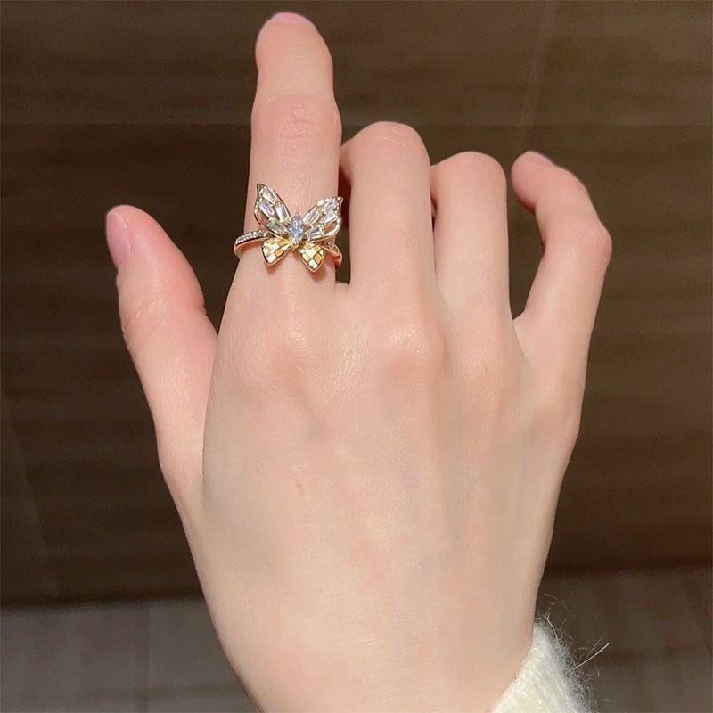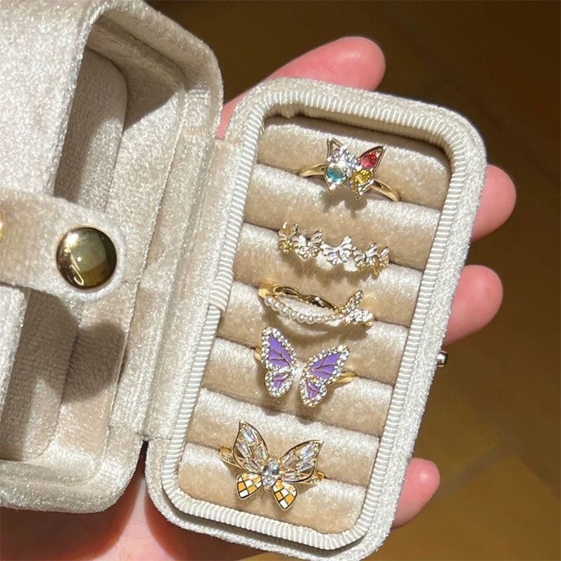 5枚入かわいい蝶がきらきら光るイヤリング指輪レディースアクセサリーリング