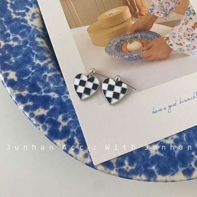 イヤーカフ ブラックホワイト チェック柄 人気ピアス / リング/ブレスレット/ネックレス春の耳元をおしゃれに 春ピアス