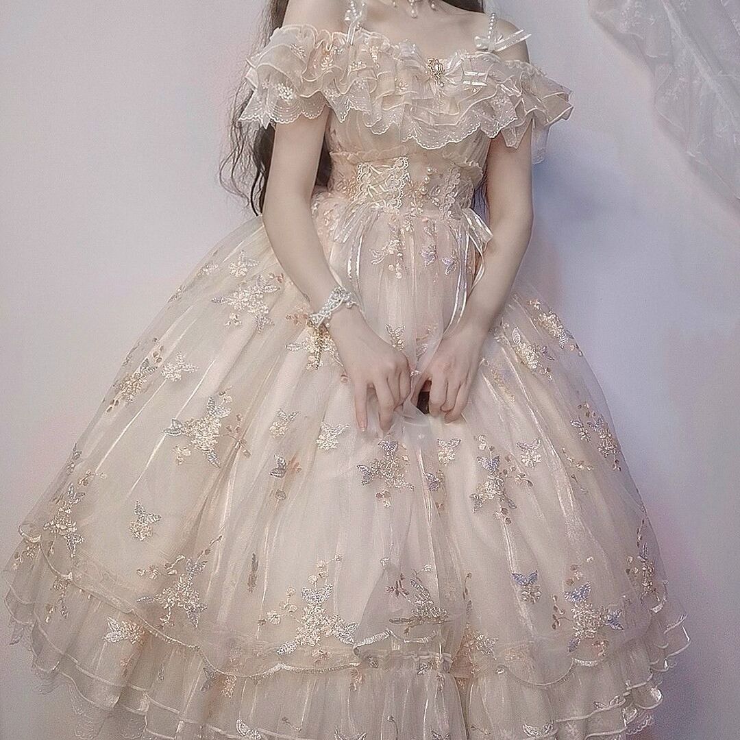花神フローラ ロリータドレス 刺繍 サマーロリータフラワー ウェディングドレス 華やかで甘美なJSKドレス