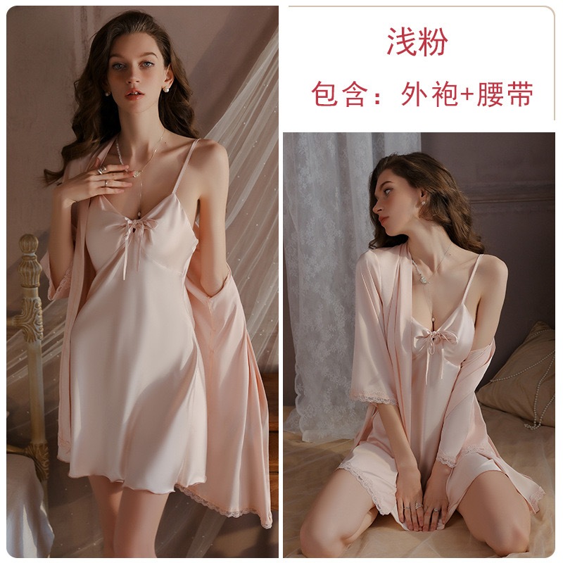 6色滑々リボンセクシーランジェリードレス+ローブセット吸引力アップ女性パジャマ寝服誘惑に満ちワンピース