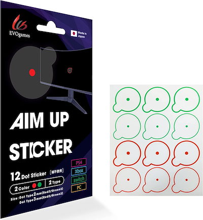 EVOgamesFPS エイム 向上 グッズ エイムアップステッカー 照準 ターゲットシール 貼り直し 可 日本製 エイムシール ドットシール PS5 PS4 Switch Xbox 対応 4種12枚 EVOgame