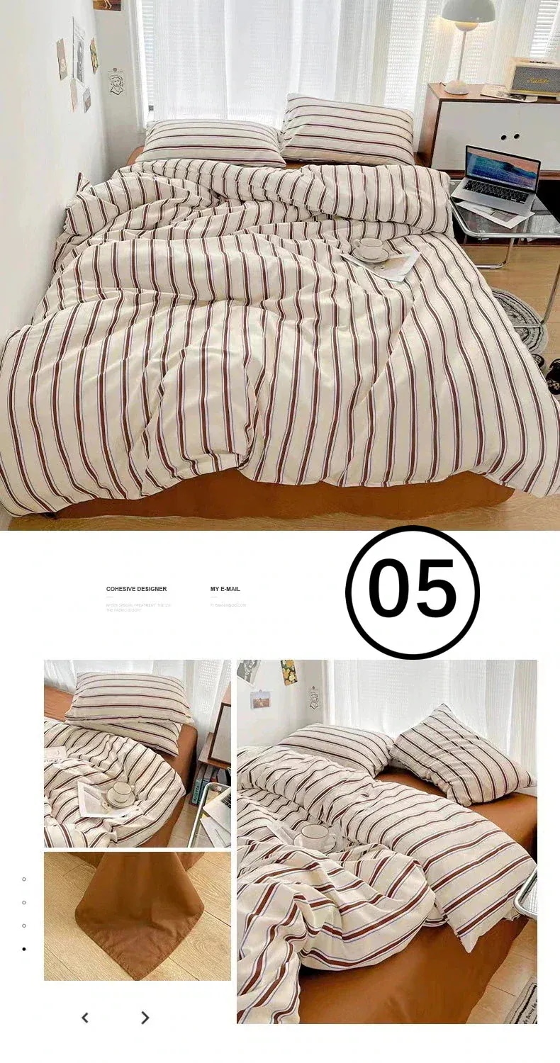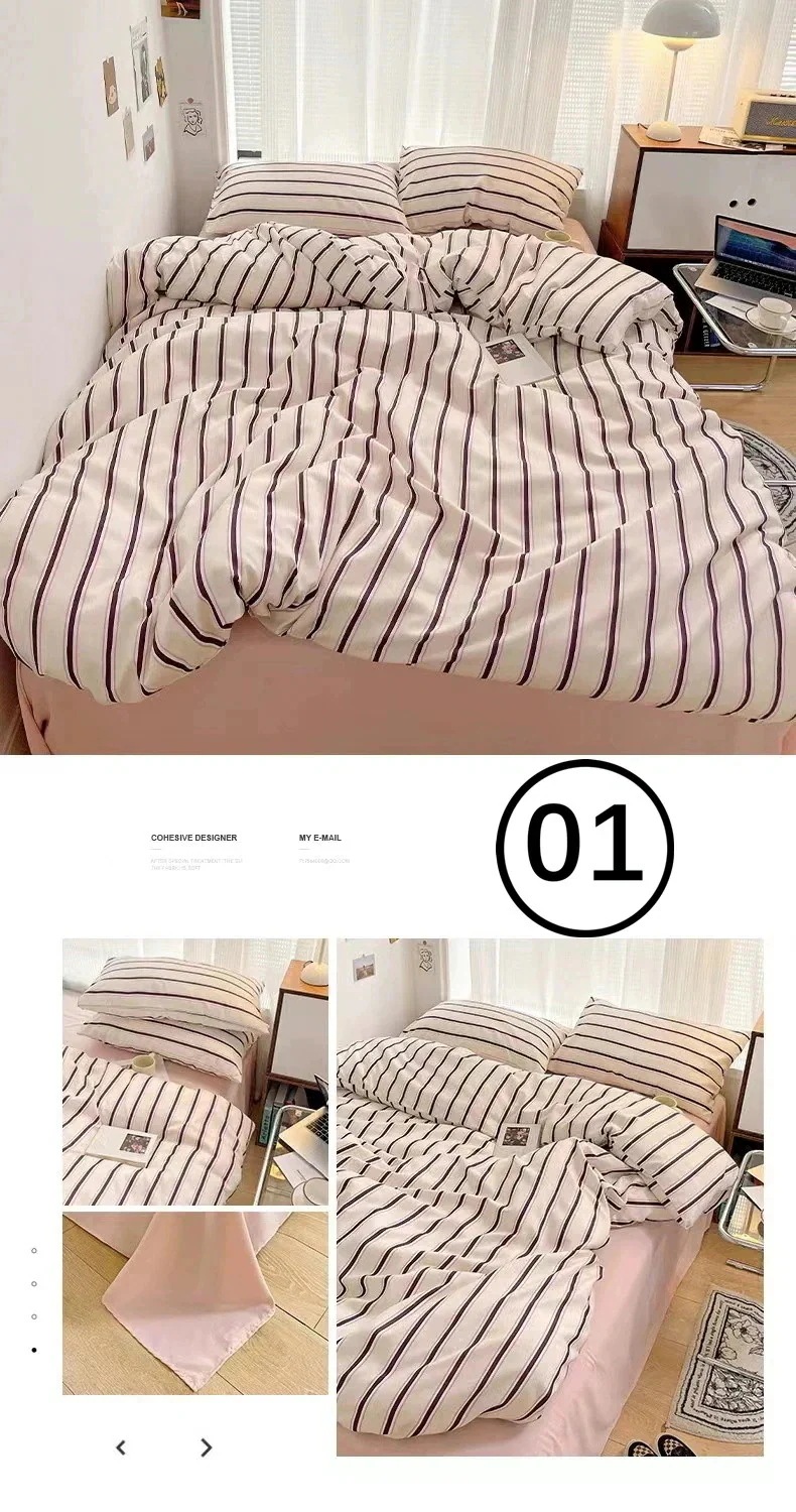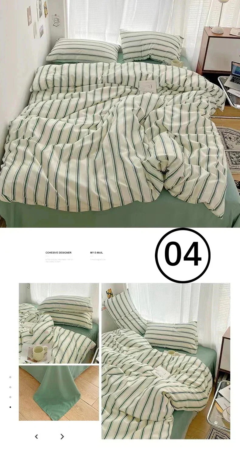 掛け布団カバーと枕カバーは思っていたより生地が厚めでしっかりしていました。フラットシーツは生地薄め。ファスナーが掛け布団カバーの短面についていますが、四隅にしっかりとしたズレ防止の紐がついているので問題なく使えます。