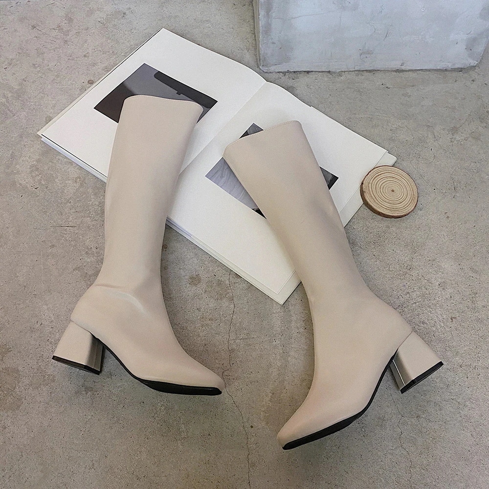 ハイヒールライダーブーツ定番 ロングブーツ ブーツ レディース レトロ スクエアトゥ 太めヒール ブ