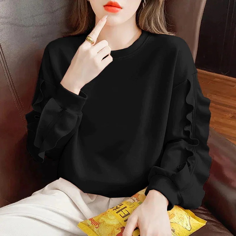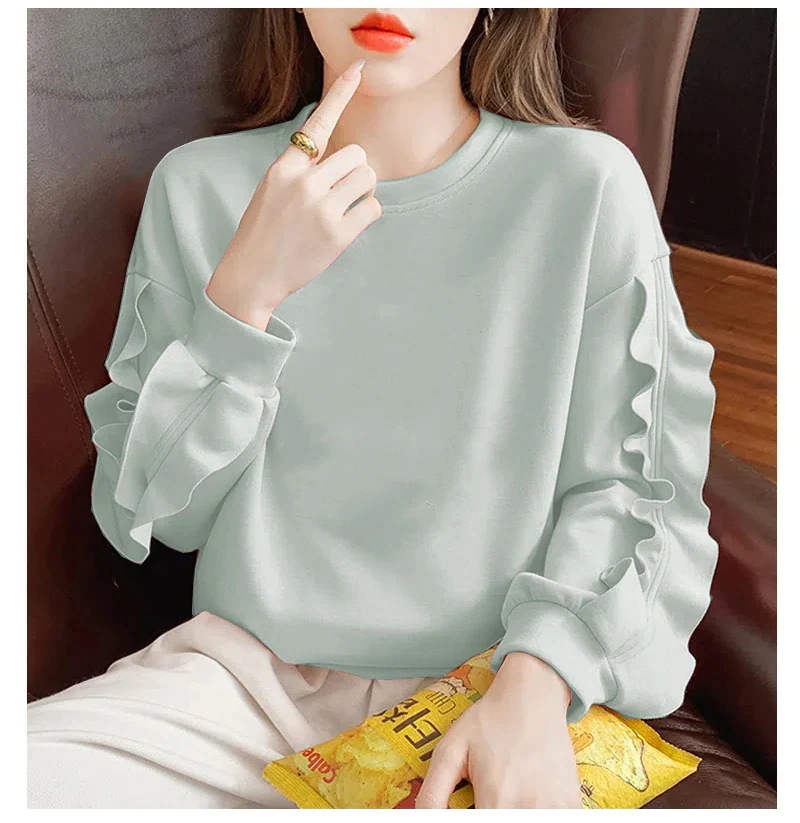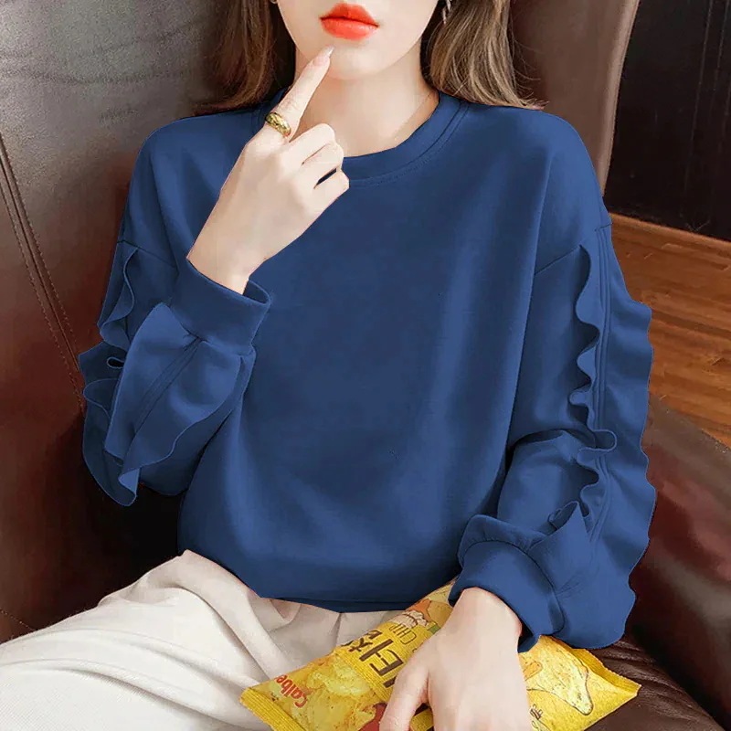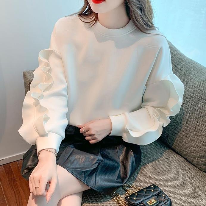 画像通り、袖のフリルがかわいい薄いジャージ生地のトップスで2XL買いましたがМ〜L位のサイズ感でした。