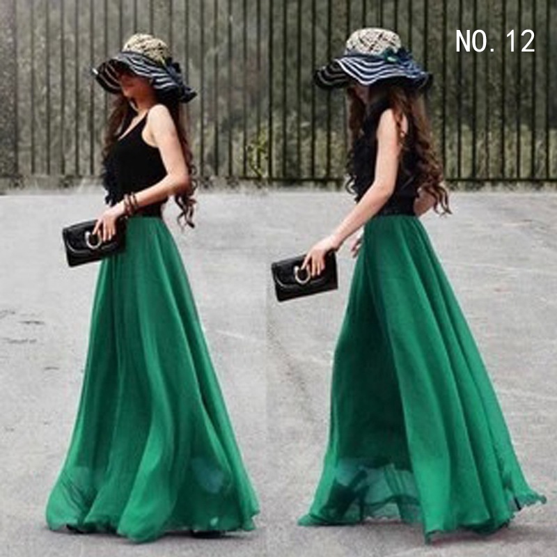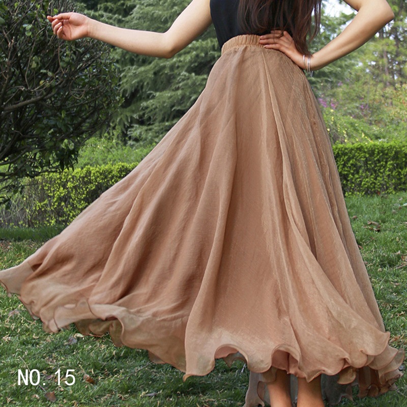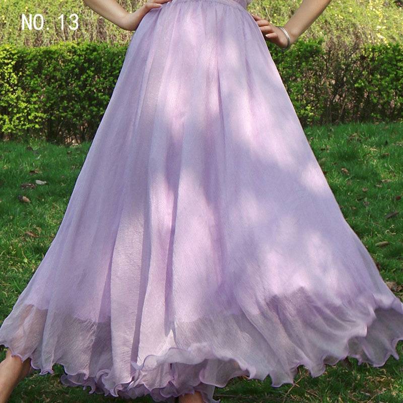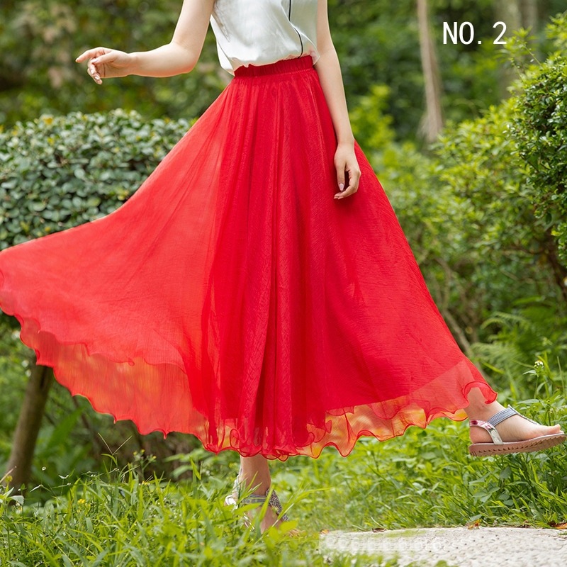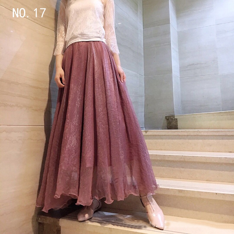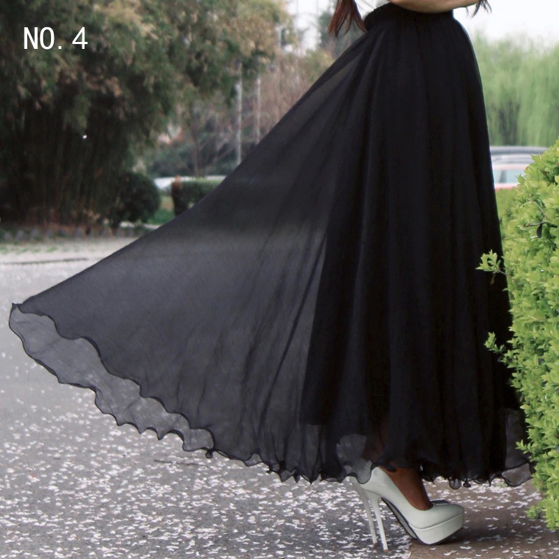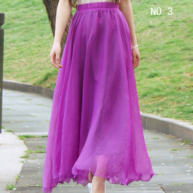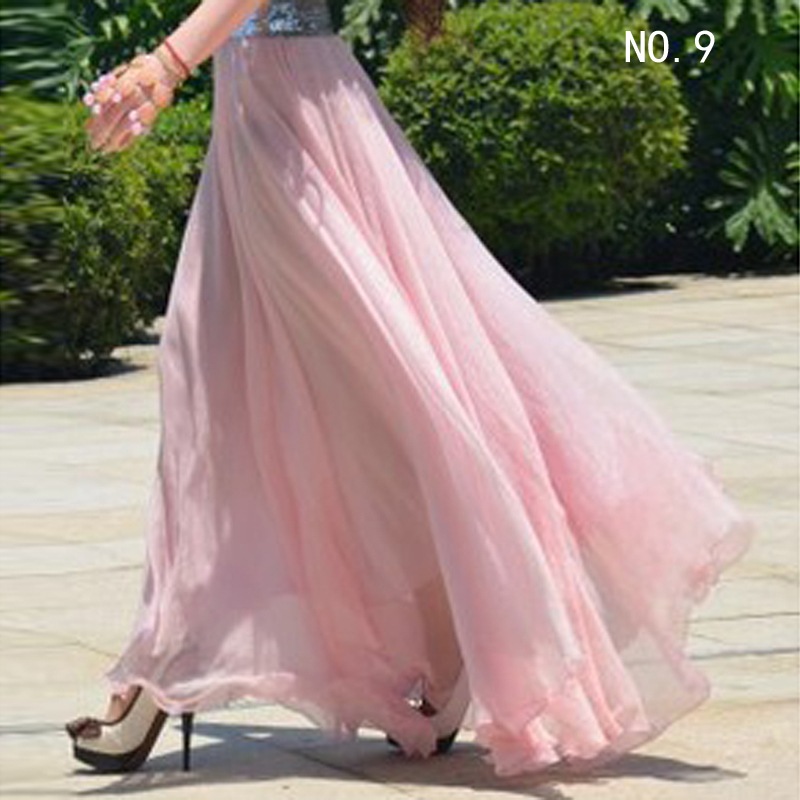 シフォンスカート ロングスカート シフォン ウエストゴム 裏地付き 無地 裾約8m フレアスカート 18color ボヘミアン かわいい おしゃれ ファッション 春 夏 着痩せ感UP 演奏会用