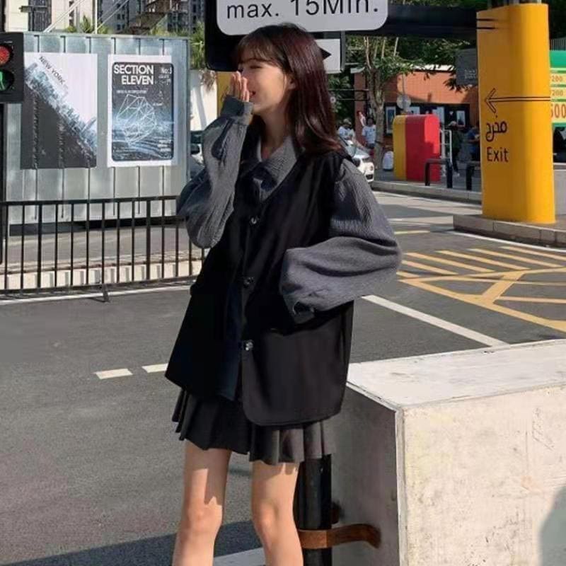 スーツセットアップ【スーツ3点セット】アカデミア風スーツベスト学生少女シャツプリーツスーツ女