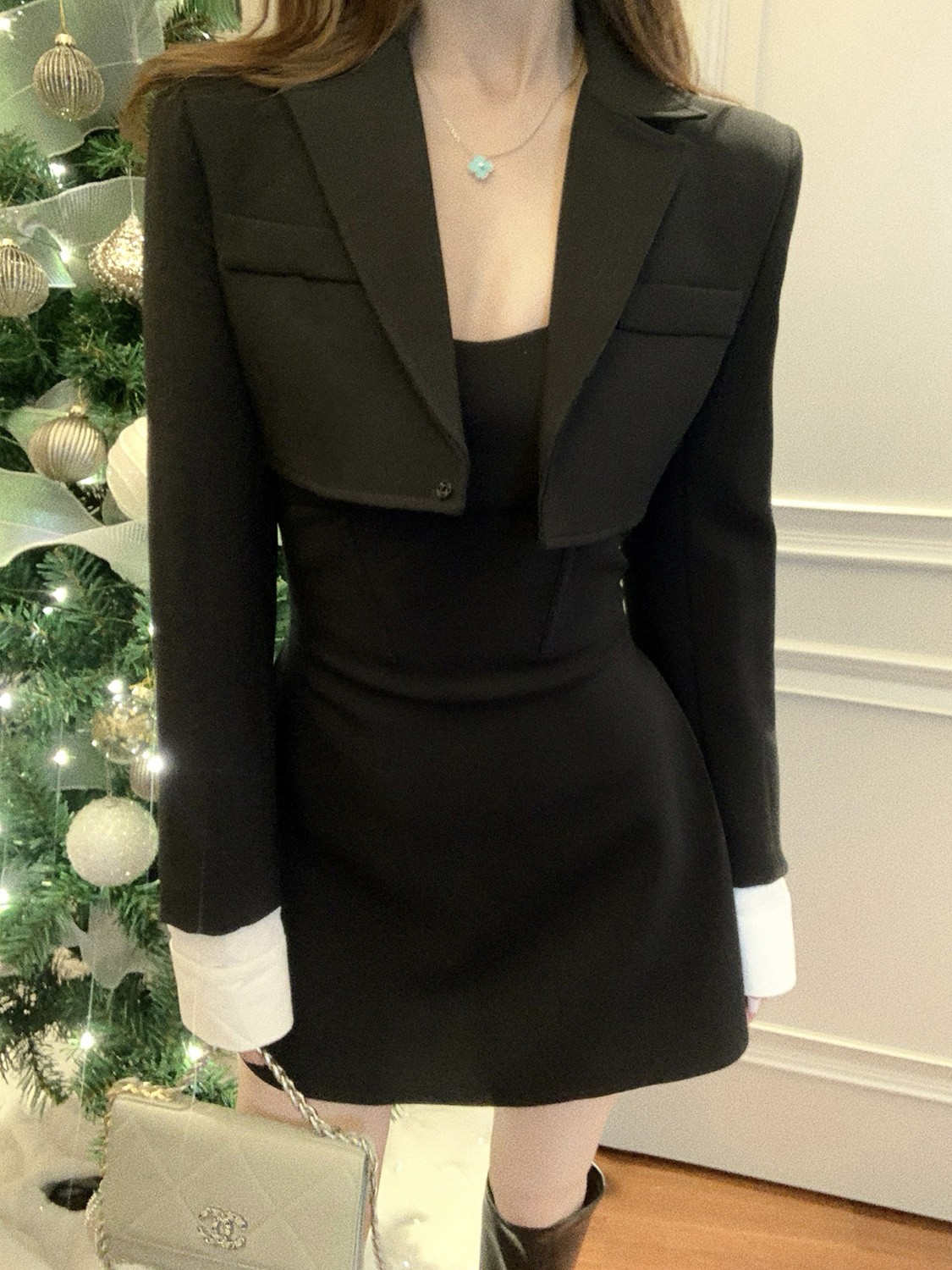 スーツセットアップ韓国版ファッションシャツパッチワークブレザー 夏新作キャミソールスカートスーツ2点セット