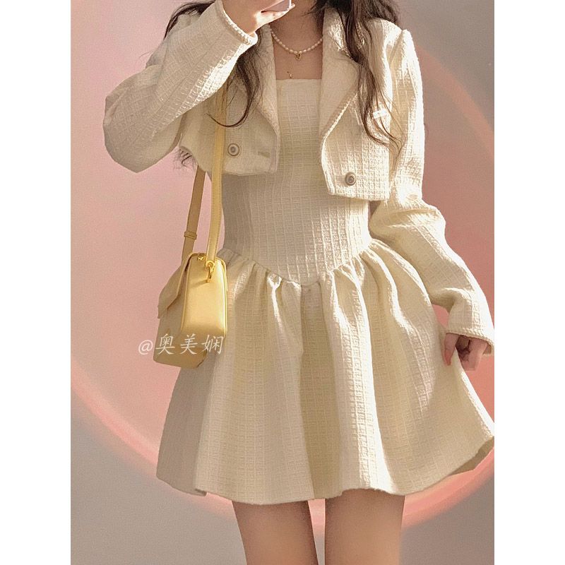 涼しく楽ちんセットアップ ブレザースーツ春秋新作ワンピースショート丈ブレザー2点セット