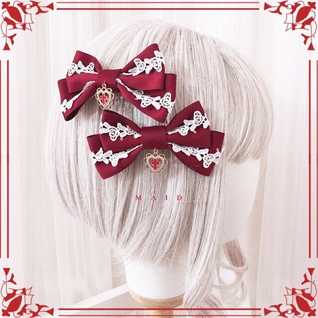 オリジナルのりKCロリータヘアアクセサリー赤と白のクリスマススーツボウノットレー