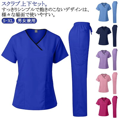 白衣 スクラブ 上下セット 作業服 半袖 ズボン セット スクラブ 医療白衣 男女兼用 ユニフォーム メンズ レディース ナース服 大きいサイズ 吸汗 速乾 看護師 男性 女性 医師 手術着 医療 制