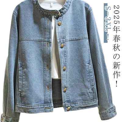 デニムジャケット 春 アウター レディース ノーカラージャケット 長袖 Gジャン デニム ノーカラー ジャケット ライトアウター 立ち襟 ゆったり ノーカラーデニムジャケット 羽織り 春服 秋服 大人
