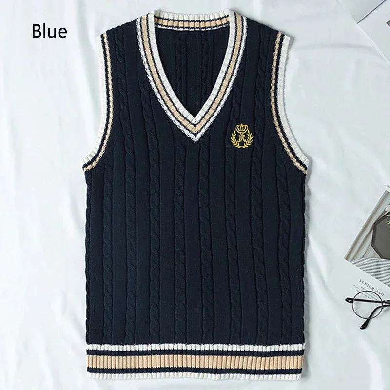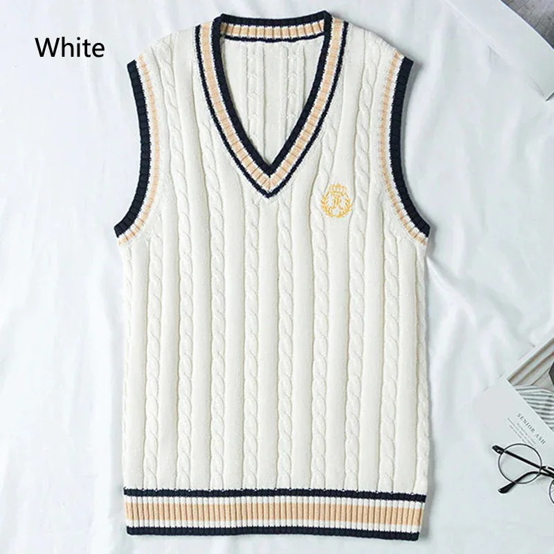 制服ベスト プラスサイズ レディースメンズ 100%綿コットン Vネック ジレ セーター トップス アウター 可愛い かわいい 女子高生JK学生服 高校生 学院 スクール 刺繍 ニットベスト
