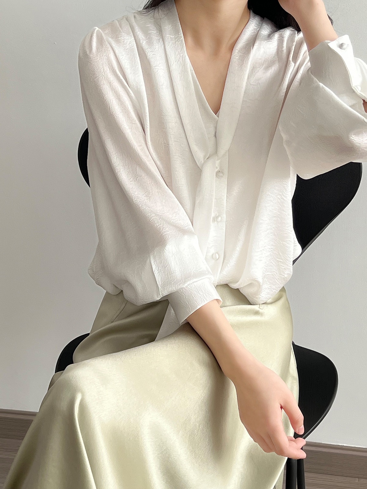 2025 秋  大人気  レディース   シャツ ブラウス トップス 着痩せ  長袖  リボンネックブラウス おしゃれ 通勤