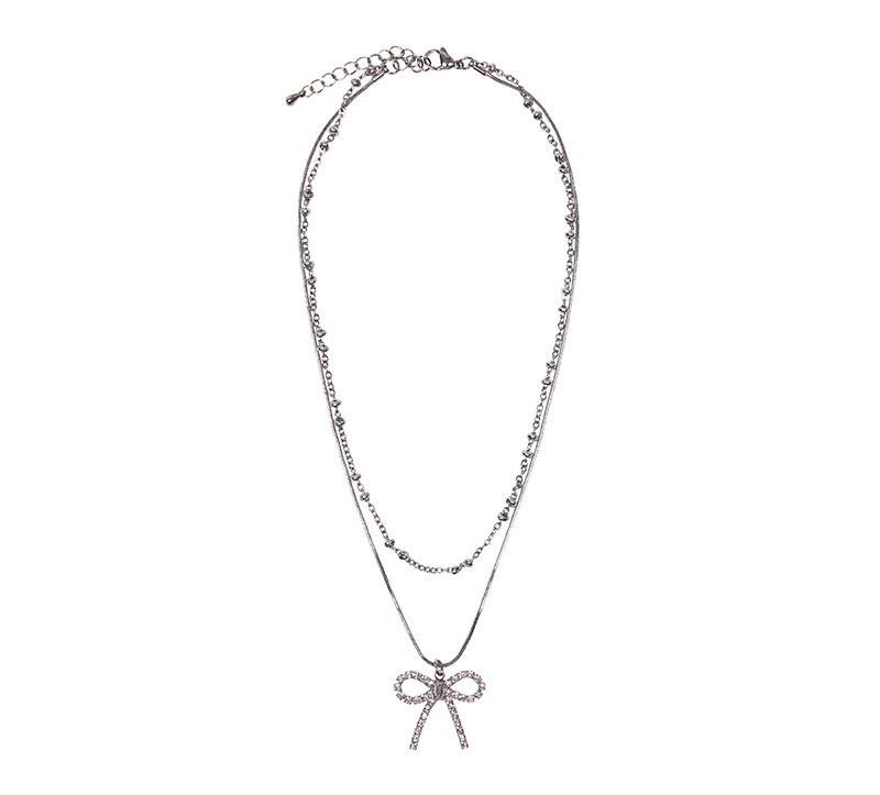 LUV IS TRUE[CH RIBBON NECKLACE] レイヤード / キュービックリボンペンダント/サージカル素材を活用