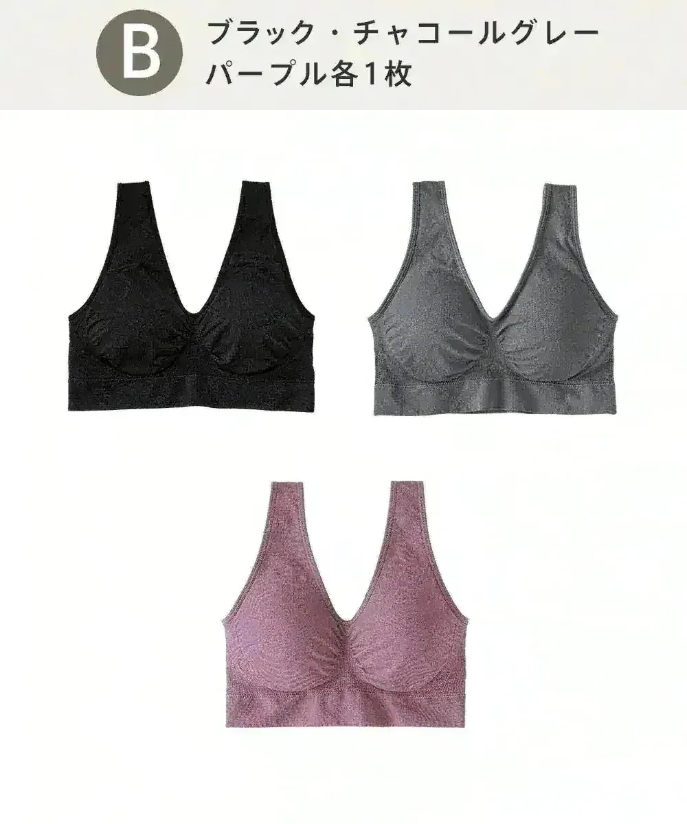 なんでもいいのでナイトブラ的なものが欲しくて、3枚でお得だったので購入してみましたが、苦しくなくしっかり支えてくれる感じで大満足です!普段B70でSぴったりでした!