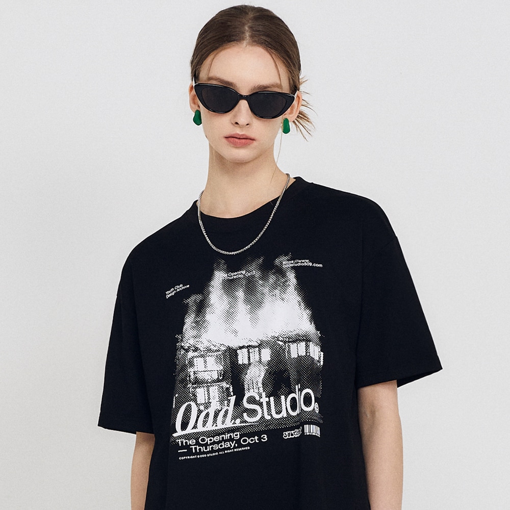 ODD STUDIO[ステッカーセット贈呈]バーニングハウス グラフィック オーバーフィット Tシャツ - 2カラー