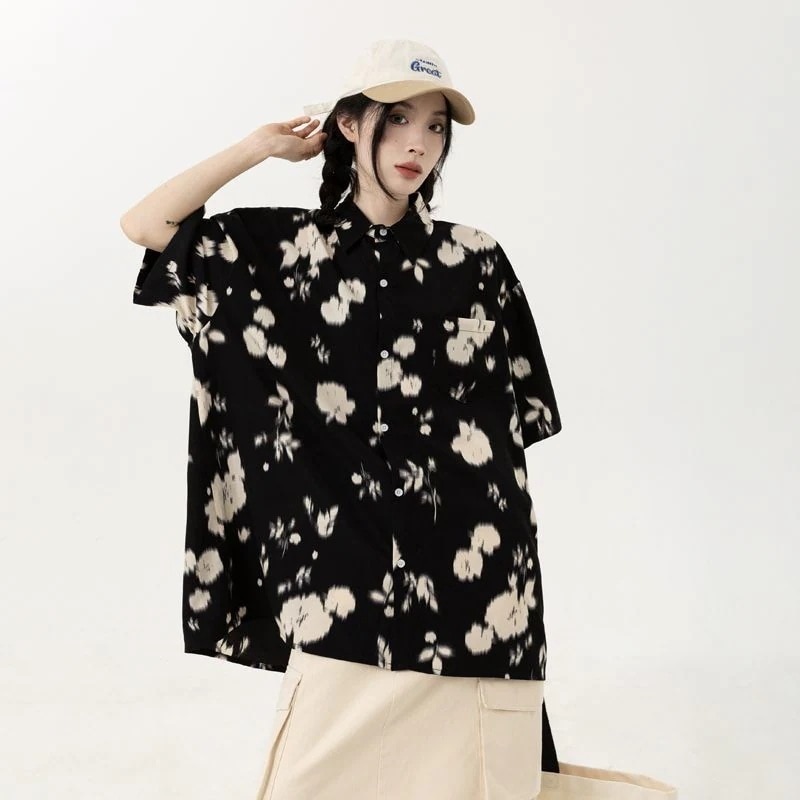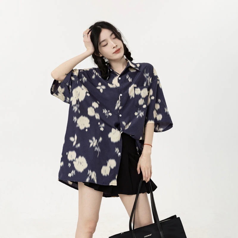 シャツ 夏ゆったりカジュアル花柄シャツレディースins半袖花柄トップスシャツ 半袖 レディース トップス シースルートップス ブラウス半袖Tシャツ