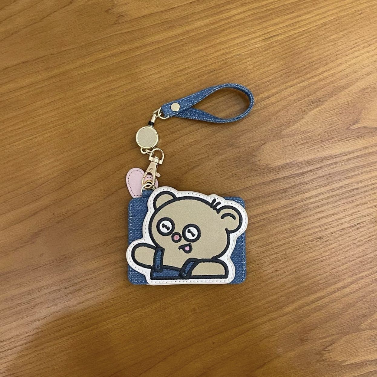 ティムティム ベア デニム 刺繍 カードホルダー カードホルダー 収納式 キー ペンダント バッグ コスメティックバッグ 収納バッグ Xiaoxiangfeng