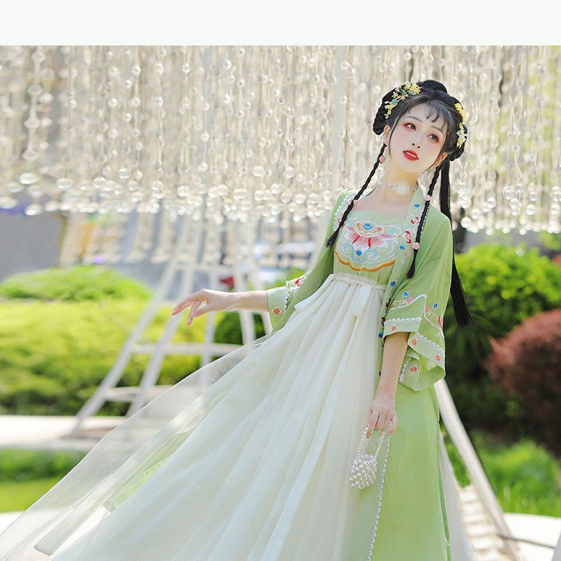 Lan Xiの新しいオリジナルの漢服の唐装の王女のシェブロンスカートの上着はレトロな民族風の刺繍の広い袖の流れる妖精のスカート
