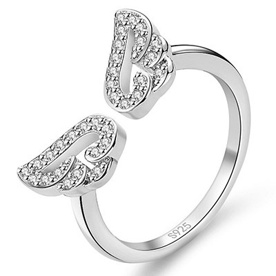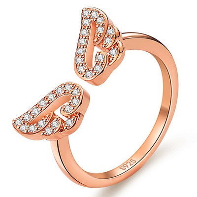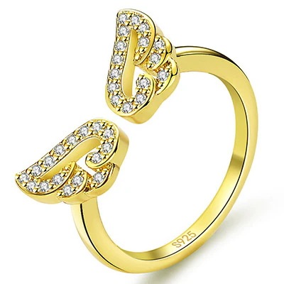 指輪 レディース リング 天使の羽 ウィング CZダイヤ 18金 仕上げ フリーサイズ 金属アレルギー対応 ポイント消化 誕生日 プレゼント