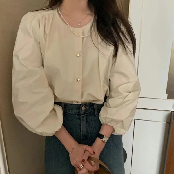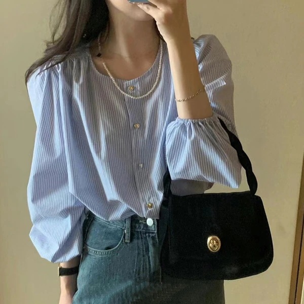 ハートのボタンと袖口がゴムで可愛いです。気軽に着れるブラウスです