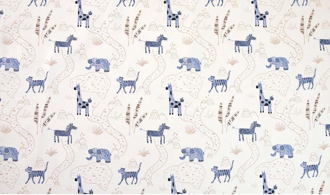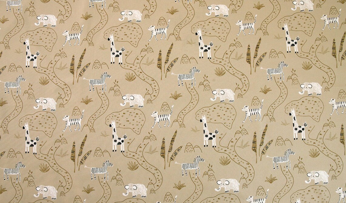 韓国生地 動物柄 獣の道 キリン 像 シマウマ 生地 コットン100% シーチング Giraffe Elephant Animal Road 45cm x 110cm