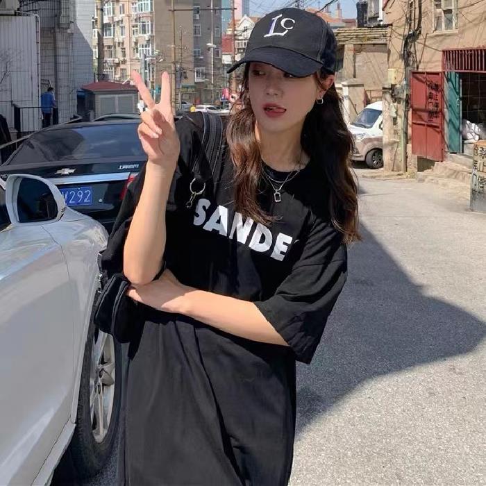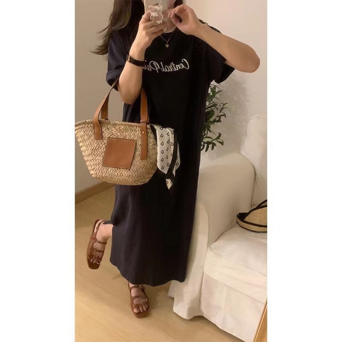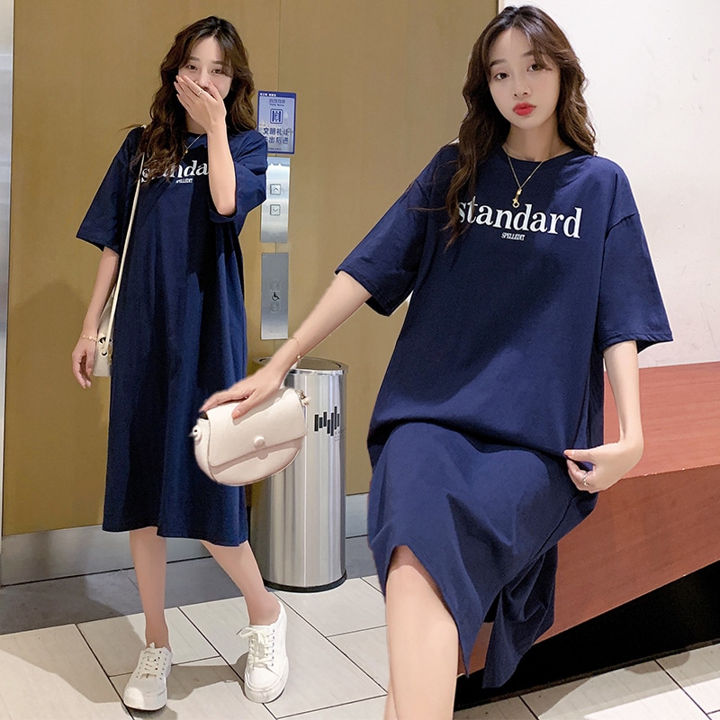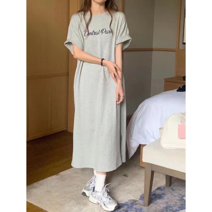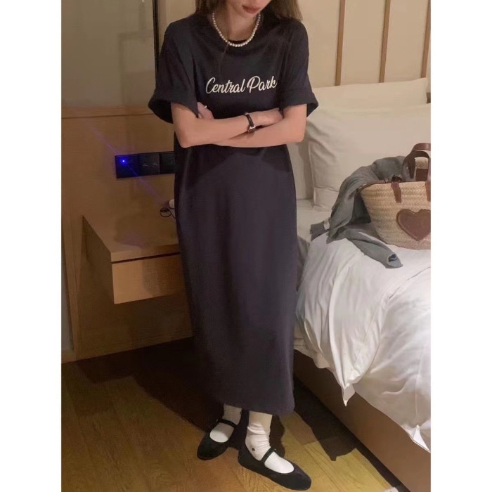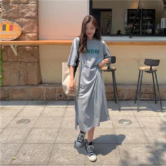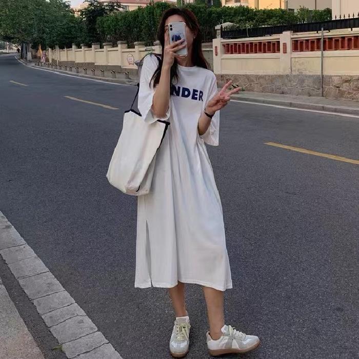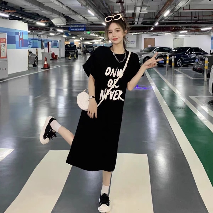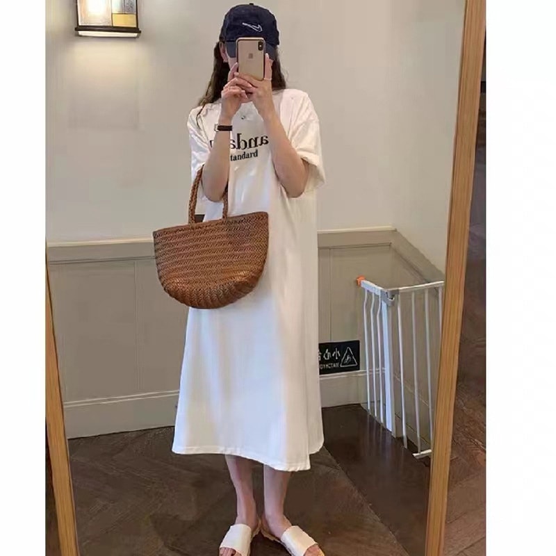 ロングワンピース/Tシャツワンピース/韓国ファッションパフスリーブTシャツ/ゆったり可愛いデザインTシャツ/M-4XL