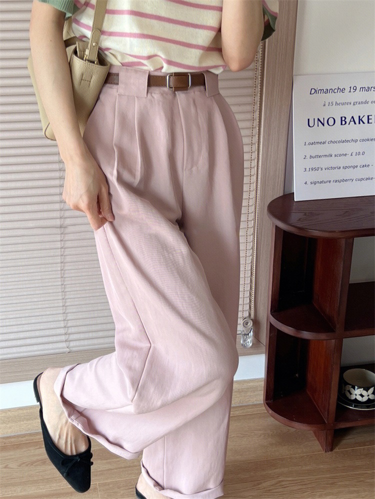 韓国ファッション ハイウエスト 2023年夏 ロングパンツ ストレート 垂れ感 ゆったりする カジュアルパンツ スリム ワイドパンツ