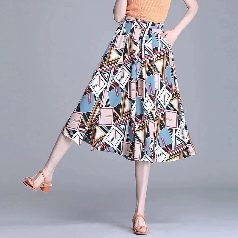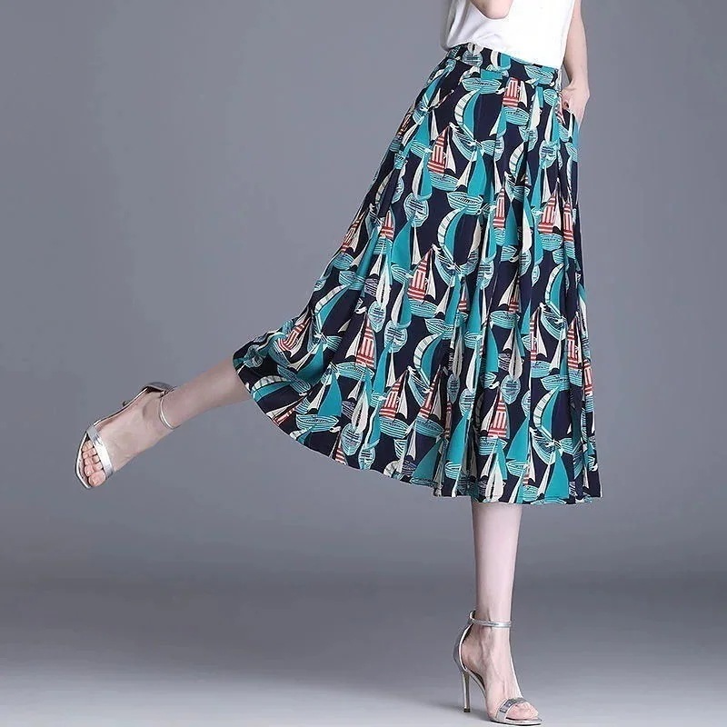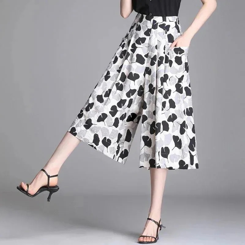 シフォンキュロット夏のゆったり2023新型薄手ハイウエストカジュアル七分パンツ ワイドパンツ ボトムス