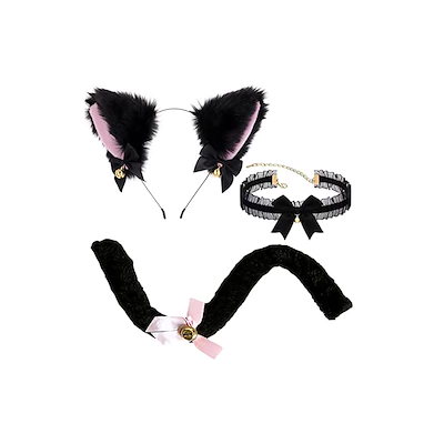 【即納】サムコス ネコ耳 コスプレ 3本セット 蝶結び カチューシャ ネコミミ 可愛い 鈴設計 猫耳 カチューシャ 仮装小物 学園祭 舞踏会 ハロウィン クリスマス (ブラック1)