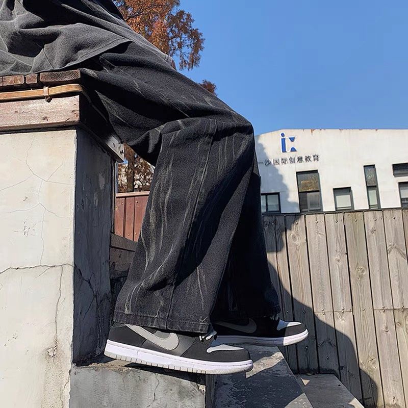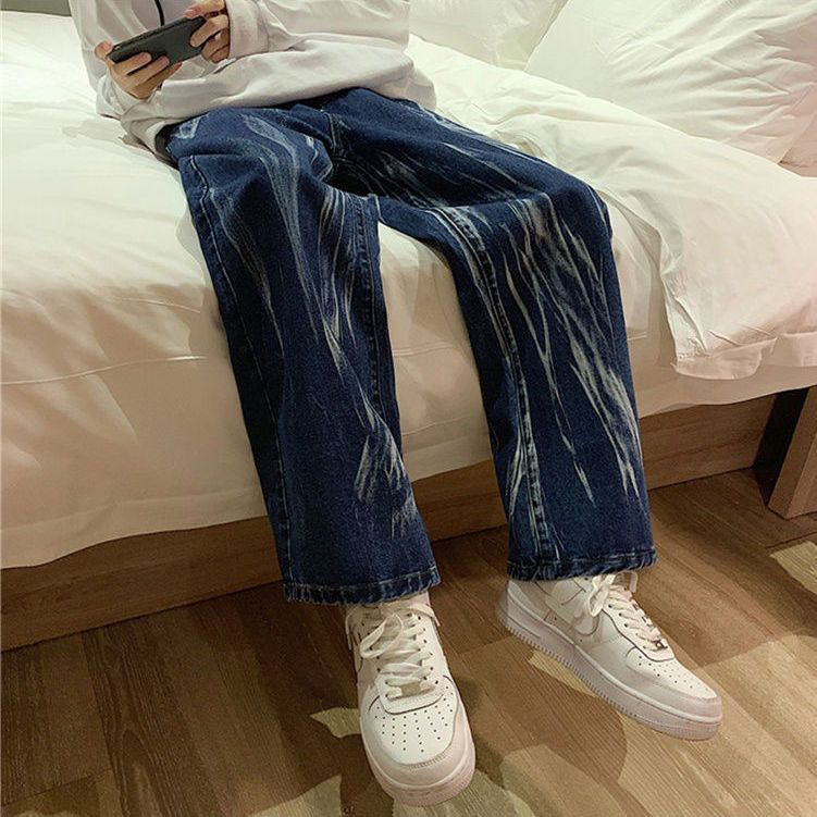 ハイストリートメンズ ワイドパンツ ジーパン 新しい ハイストリート 流行り 絞り染 デニムパンツ デザインセンス ゆったり ストレートパンツ