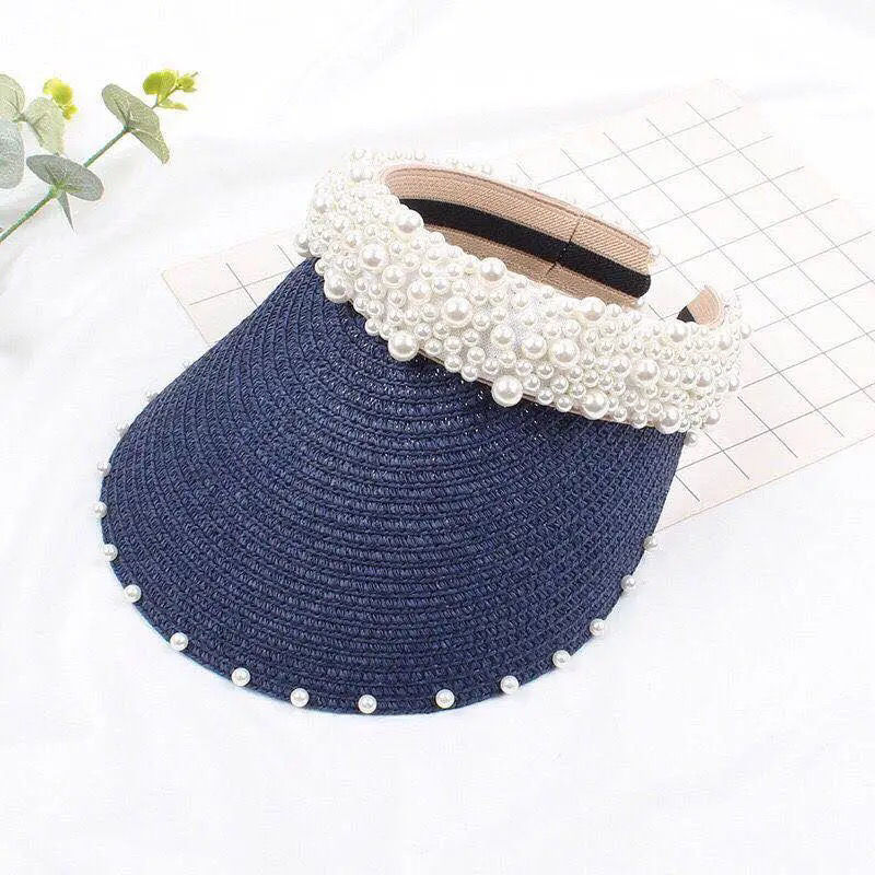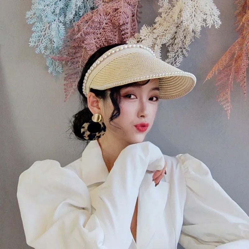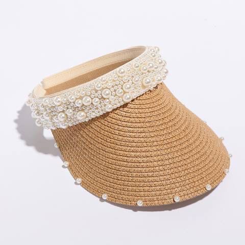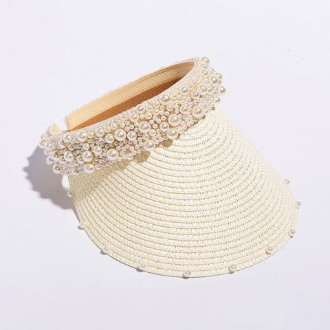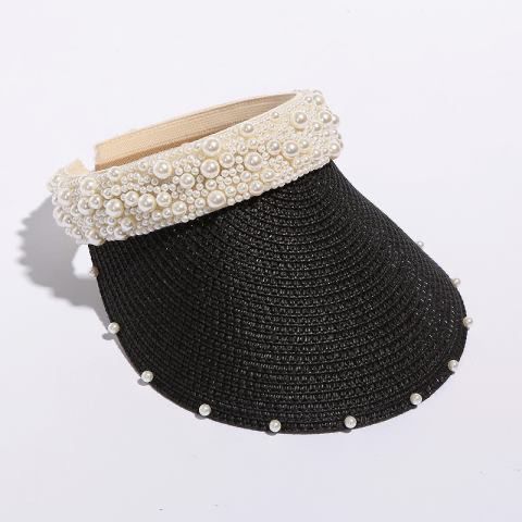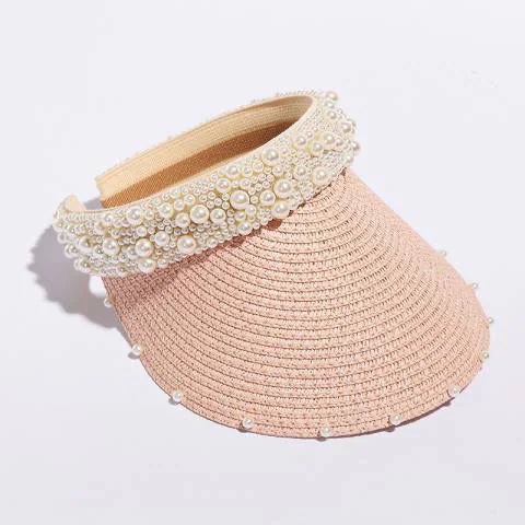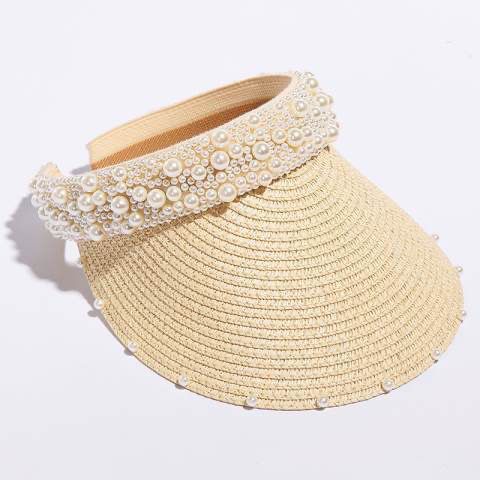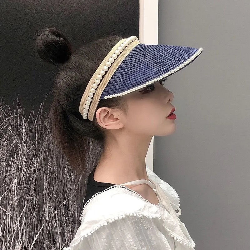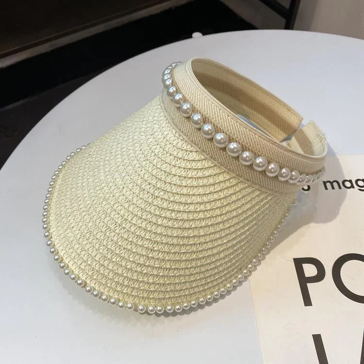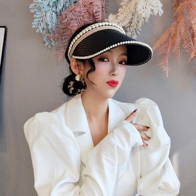 ネット赤無頂韓版手作り真珠小香風日よけ草帽子夏日よけ日よけ空頂帽子ヘアキャップ