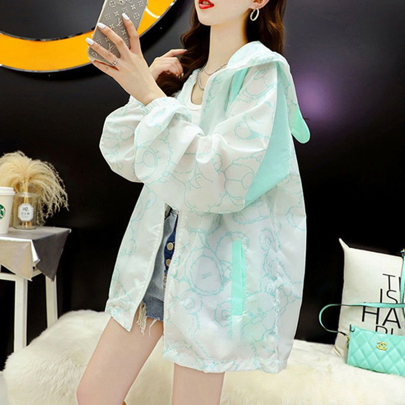 女虹長袖日焼け止め服夏の新しい韓国版日焼け止め衣ゆったりとした日焼け止めコート薄い通気性日焼け止め服