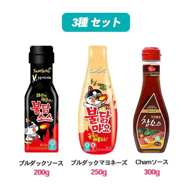 5 5myy*** 2024.08.24 Type:#01 Buldak 3種 プルダックソース 追加購入:Chamチャムソス300g(+300円)オプション : Type:#01 Buldak 3種 プルダックソース / 追加購入:Chamチャムソス300g(+300円)