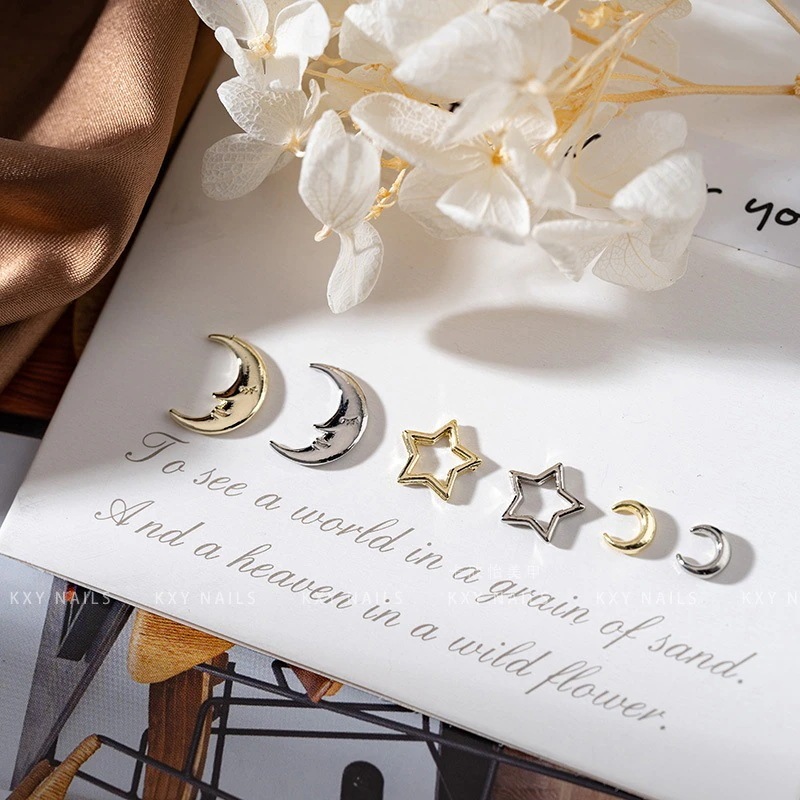 星と月のネイルチャーム 3Dネイルアクセサリー 30個セット 3種類デザインミックス 2色入 ネイルチャーム フェミニン ネイルパーツ デコパーツ 大人可愛い 結婚式 卒業式 パーティー お