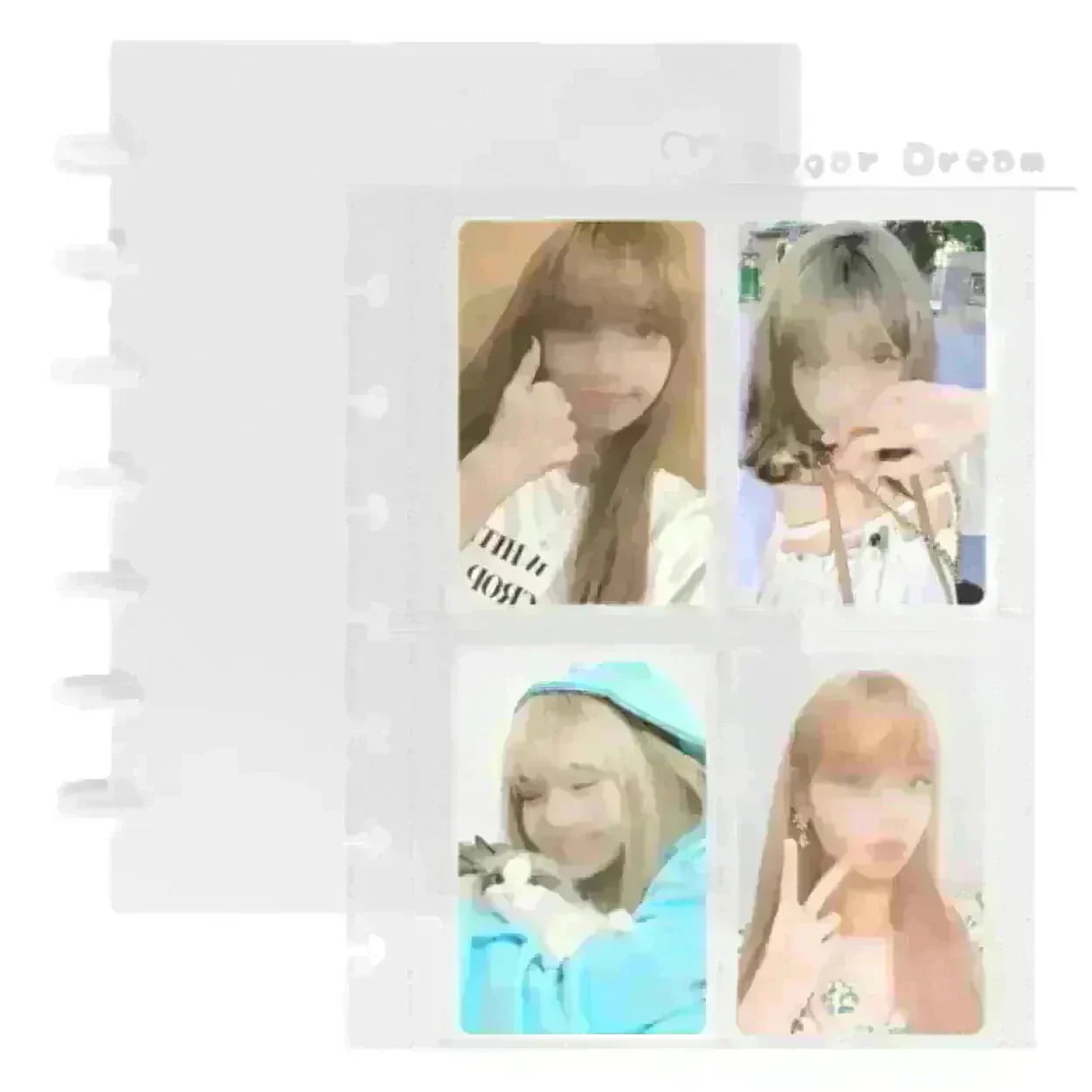 毎日購入サイトを見てやっとクリアを購入できました!全てがクリアで可愛いですし、トレカがリフィルの中で動いてしまうのが気になっていたのでピッタリ収まるのがとてもお気に入りです!裏表紙の下のところにringnoteとオーロラの文字が印刷されていたので完全にクリアな無地ではないかな?(写真2枚目)