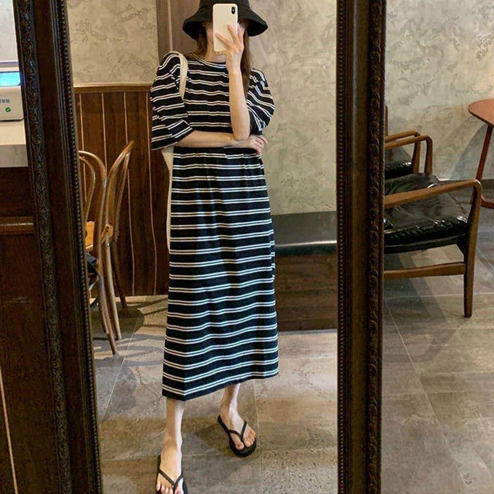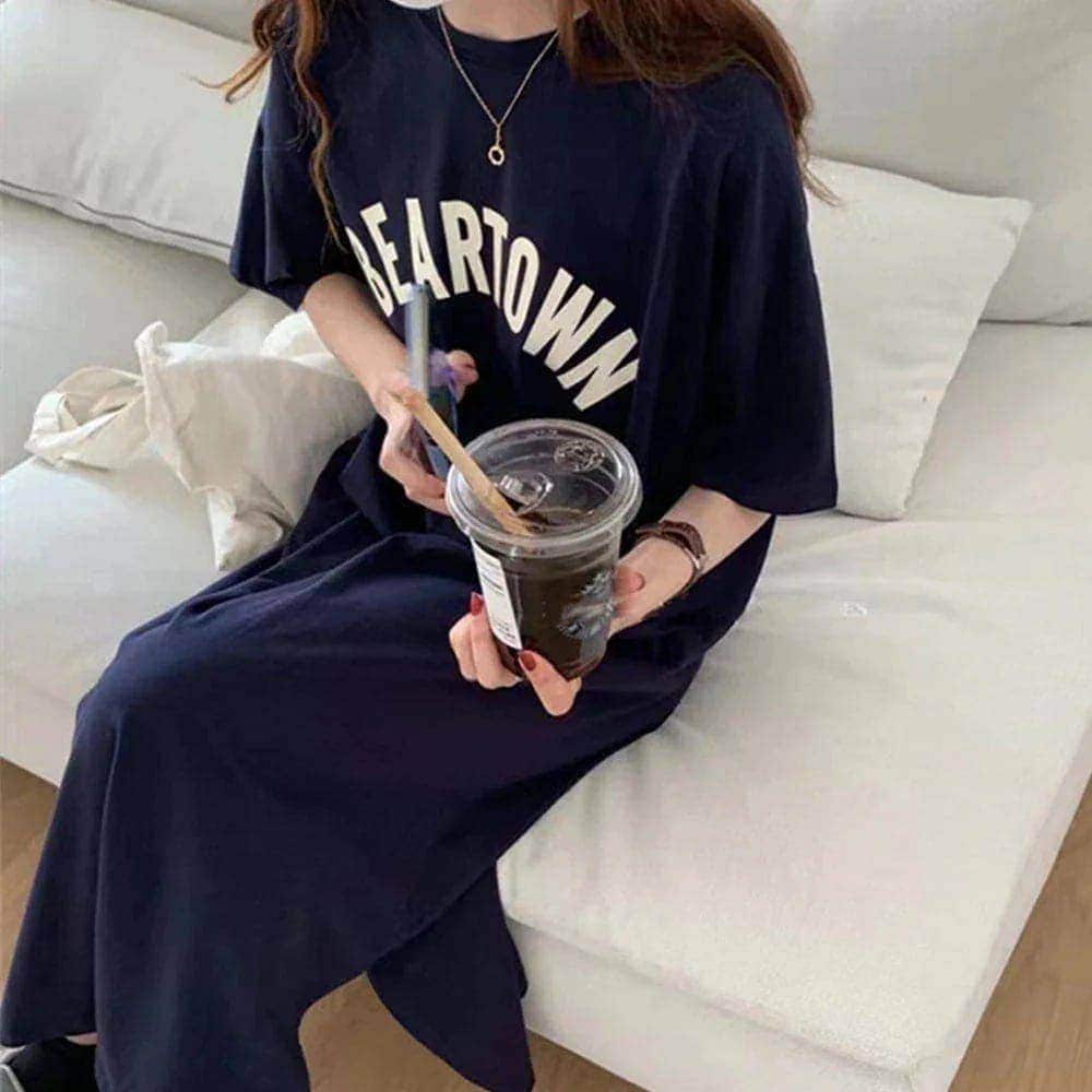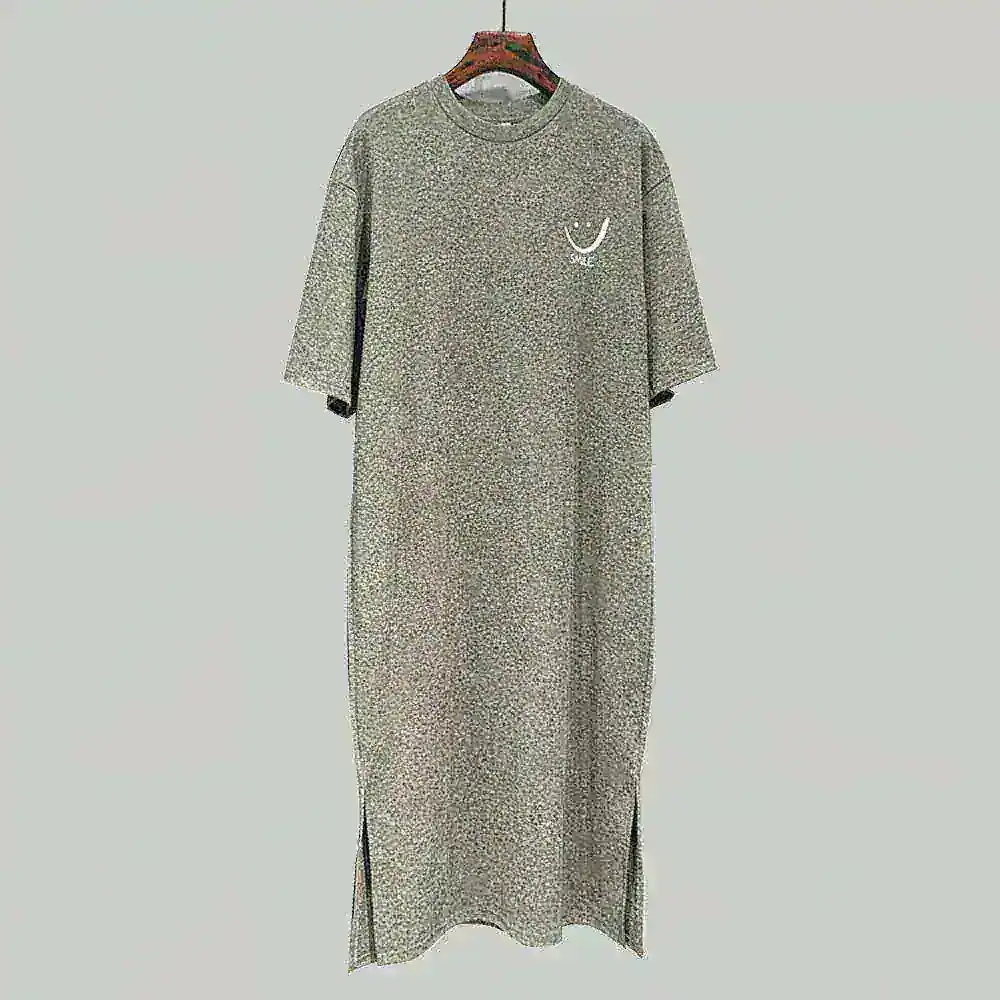 リピです。今月だけで3枚購入しました。155センチ56キロで、普段M〜Lを着ていますがレビューを参考に1番大きいサイズにしました。生地は若干ナイロンぽさがあり、暑く感じる事もありますが私的にはモデルさんみたいにゆったり長く着れて気に入ってます。サイズを大きめにして良かったなと思う点ですが、脇汗が出ても生地が当たって無いので汗染みの心配がありません。又、他のデザイン出たら買います。私は家着にしてますが、近所のコンビニやスーパーにも余裕で着て行けてます。オススメです。